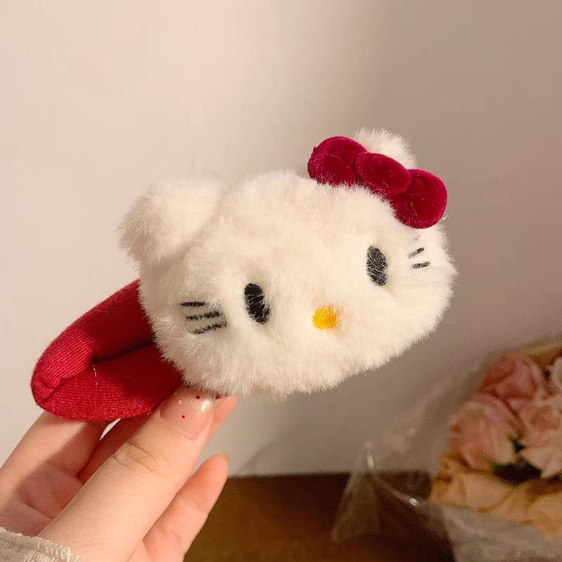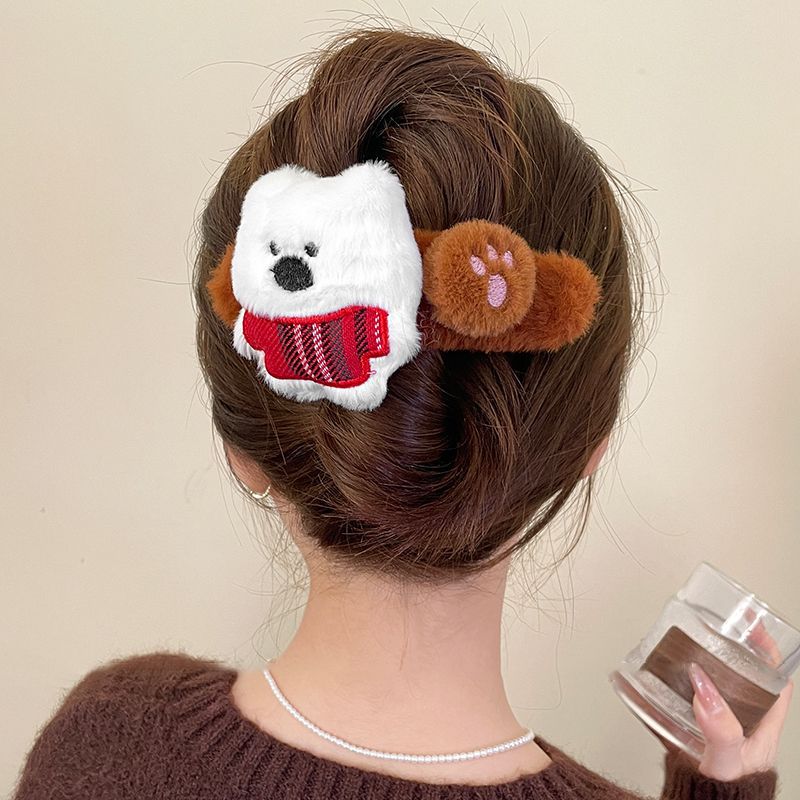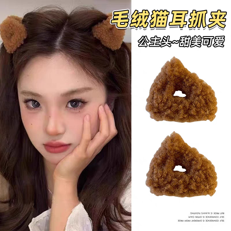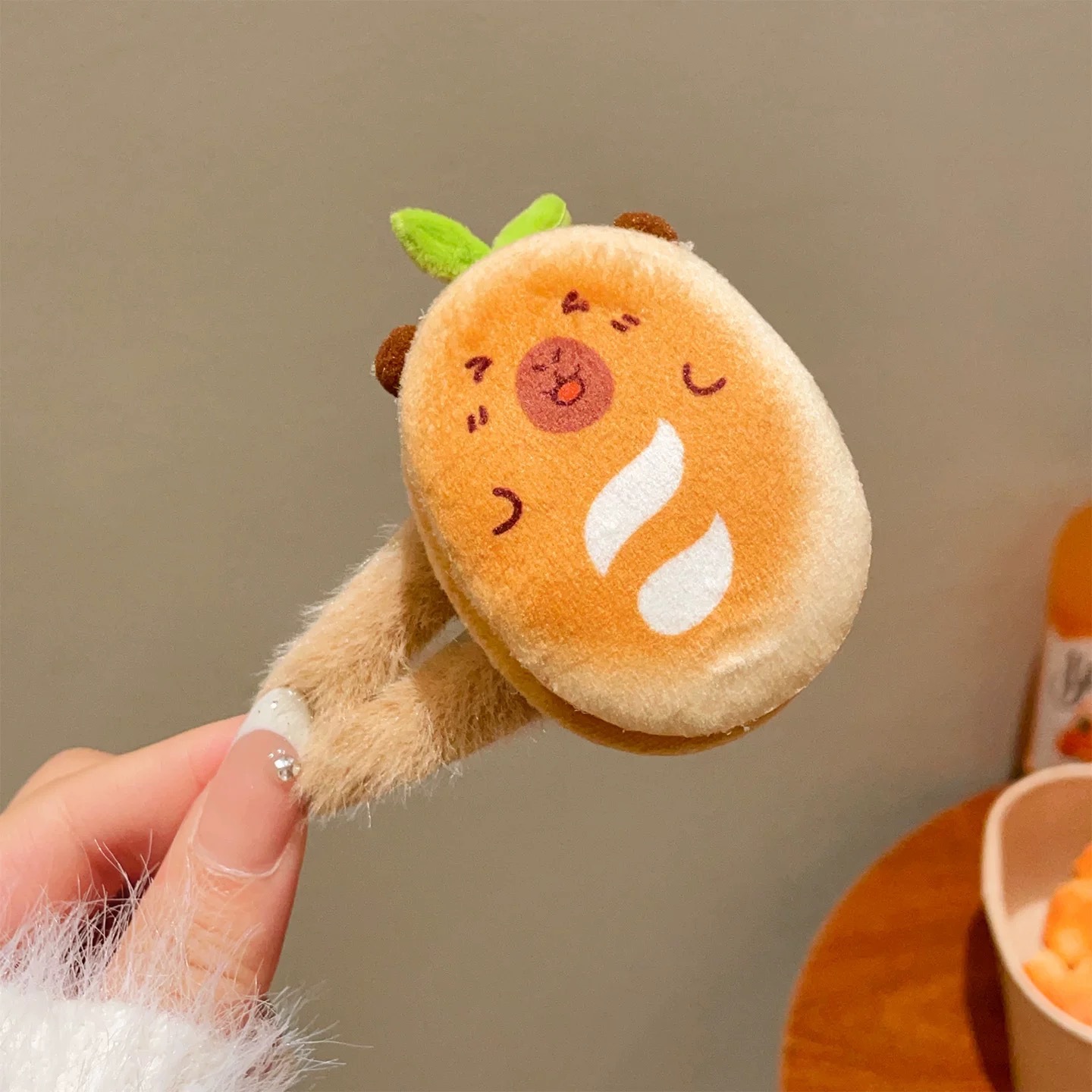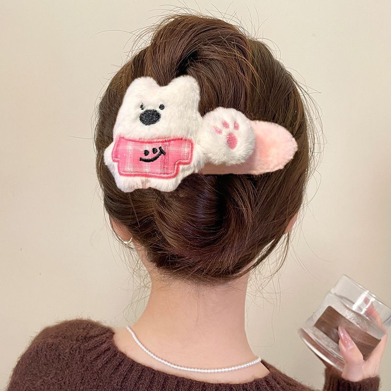 • 8#카키 스마일캣 플러시 덕빌 헤어클립 12cm
