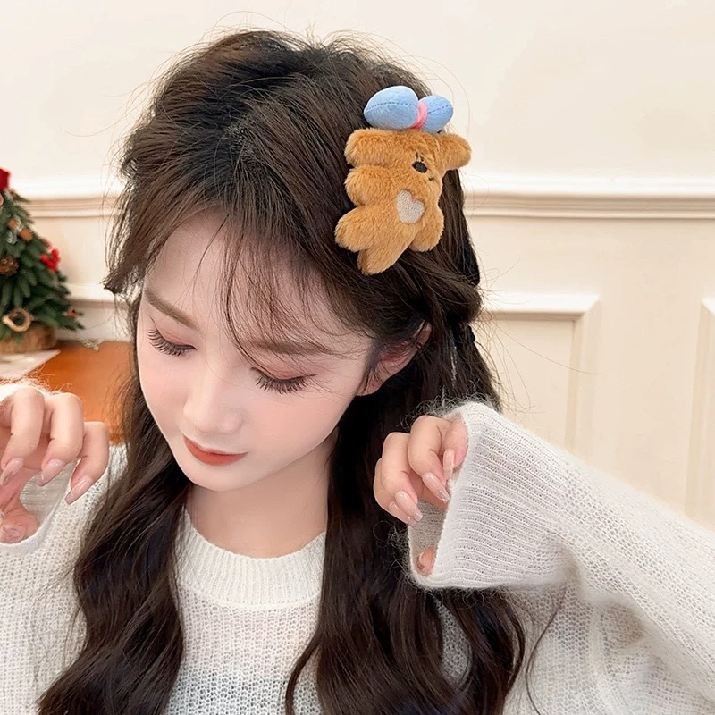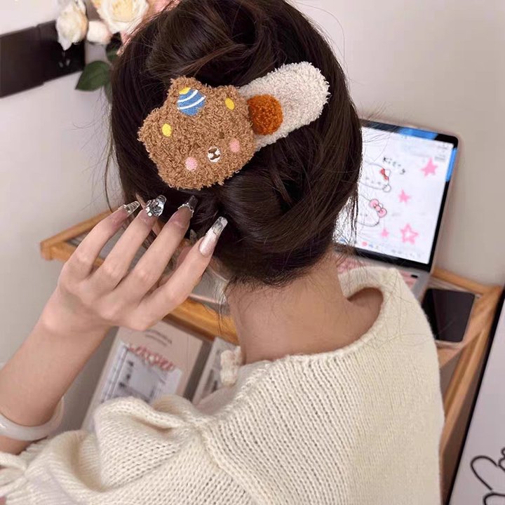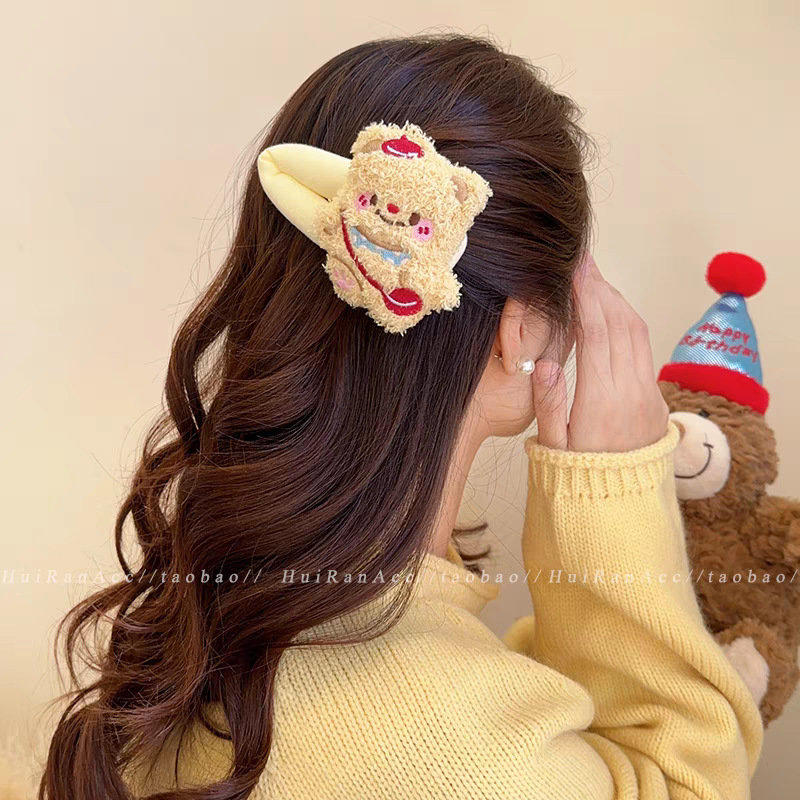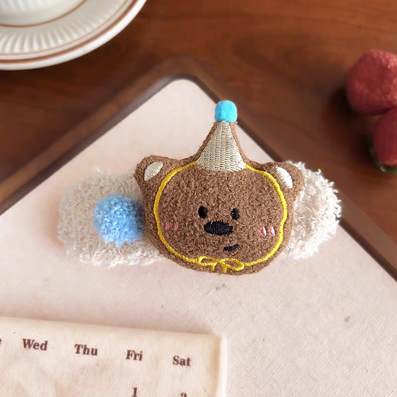 • 18#생일 모자 곰 봉제 머리핀 약 12cm