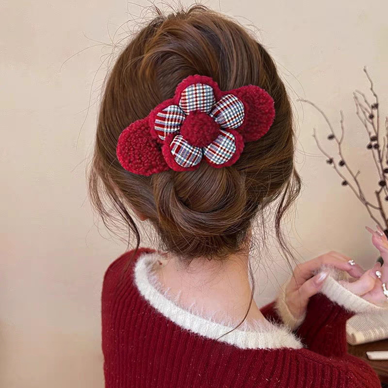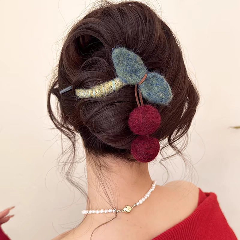 봉제 레드 애플 헤어핀 여성의 머리 뒤 큰 덕빌 클립 헤어핀 디스크 헤어 뱅이 클립 귀여운 헤어 액세서리 도매