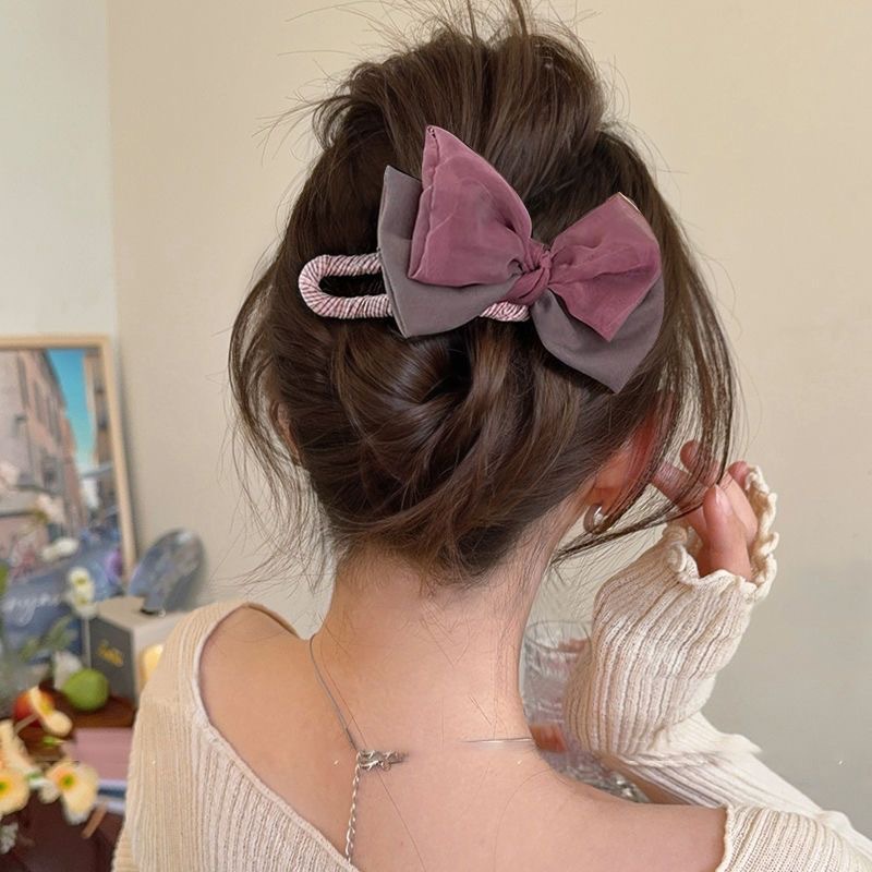 • 50#핑크 체크 더블 리본 퍼플 & 블루 체크 약 11cm