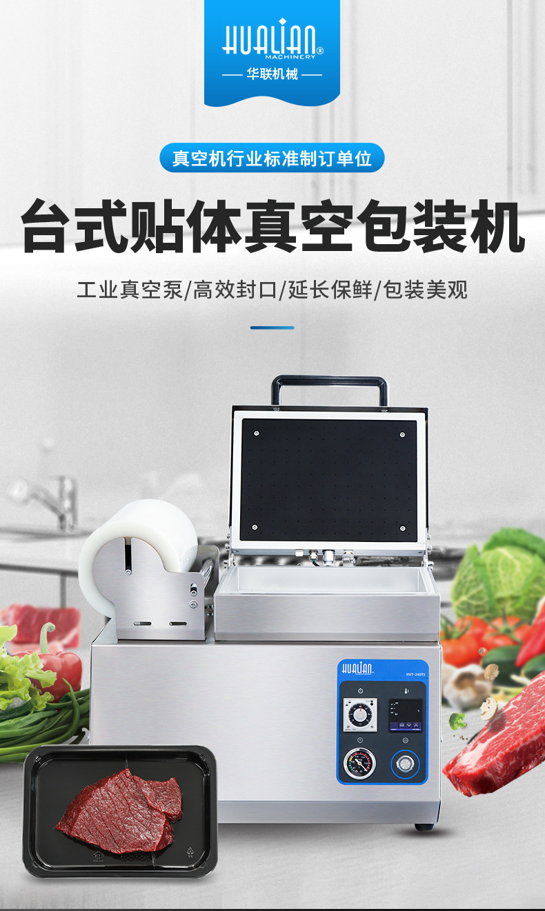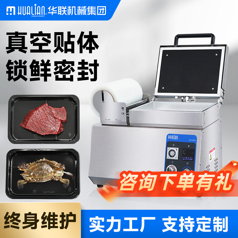 Hualian 상업용 식품 진공 피부 포장 기계 스테이크 차가운 신선한 생선 새우 포장 신선한 포장 필름 잠금