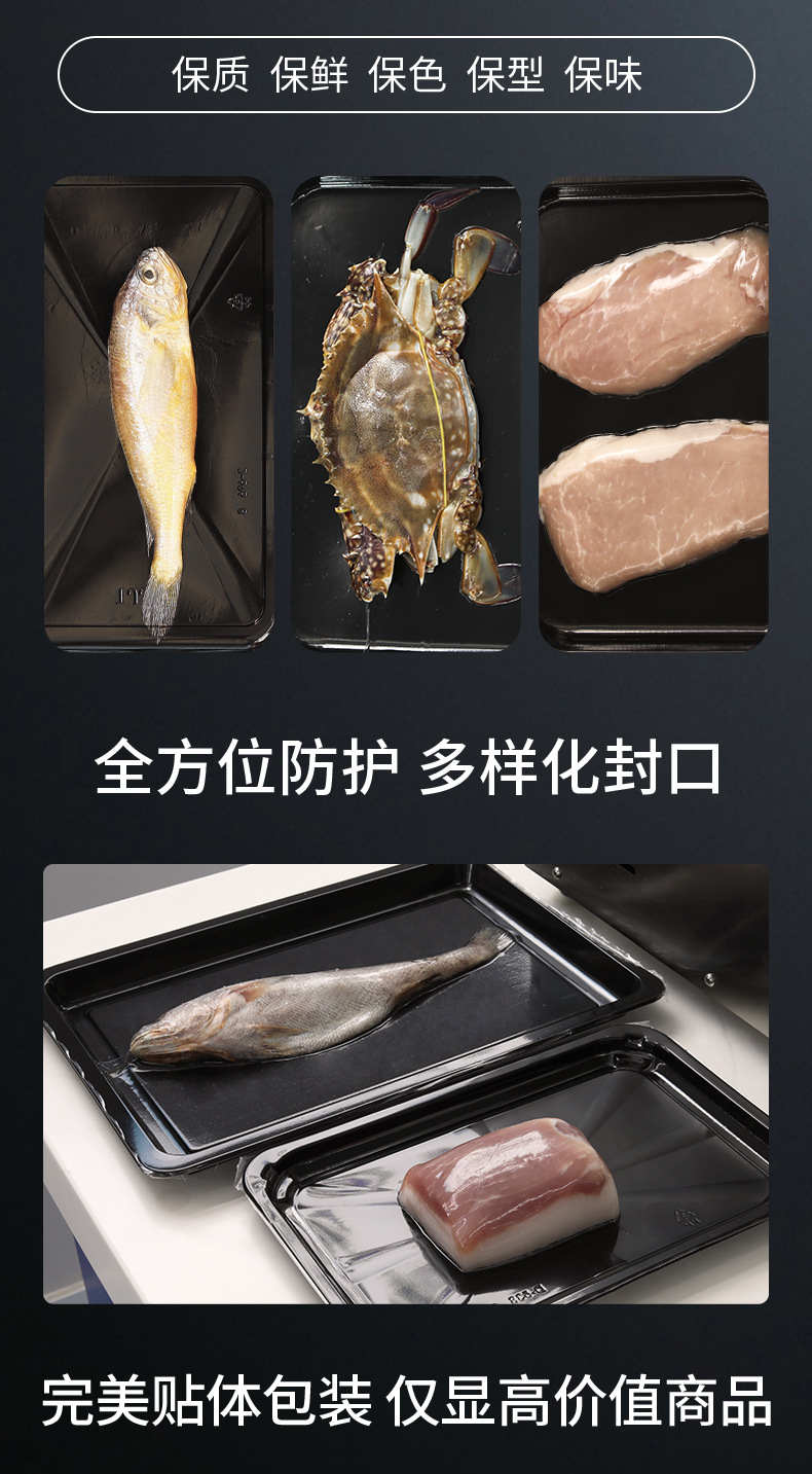 Hualian 상업용 식품 진공 피부 포장 기계 스테이크 차가운 신선한 생선 새우 포장 신선한 포장 필름 잠금스토어 가기