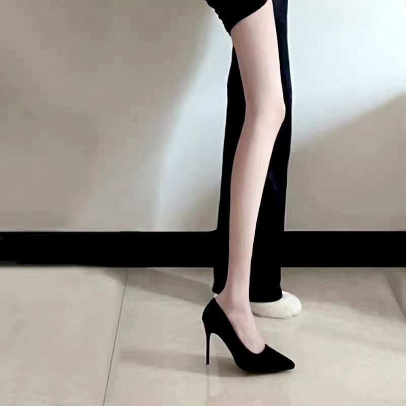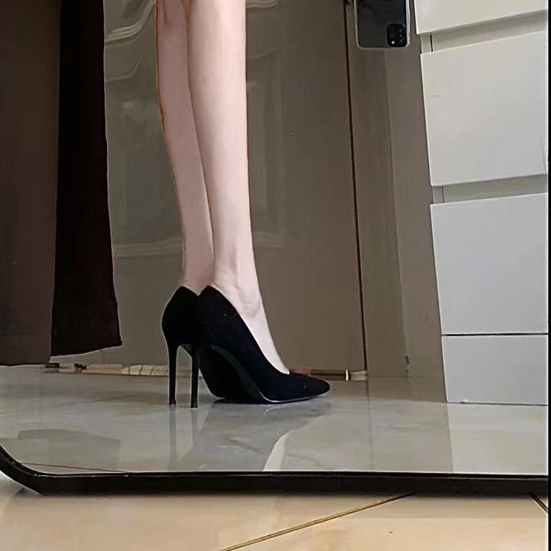 검은 하이힐 여성 스틸레토 힐 2024 뾰족한 봄 새 에티켓 신발 전문 통근 피곤하지 않은 발 작업 신발스토어 가기