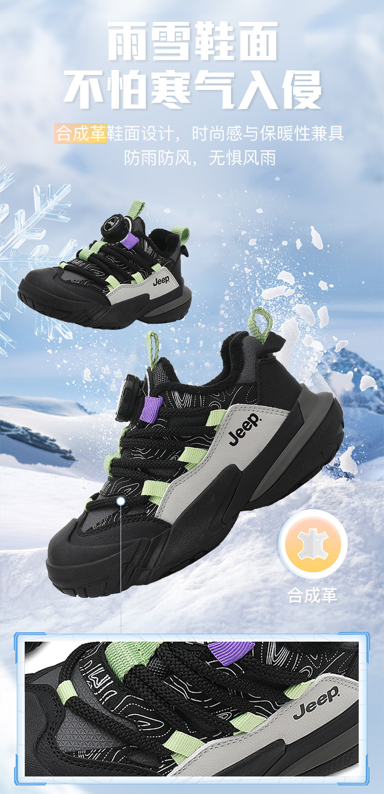 J,eep 어린이용 겨울용 면화 신발, 신상 방수 가죽 소재 남아용 신발, 여아용 운동화