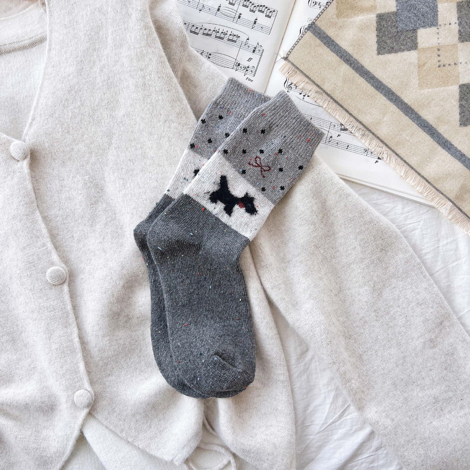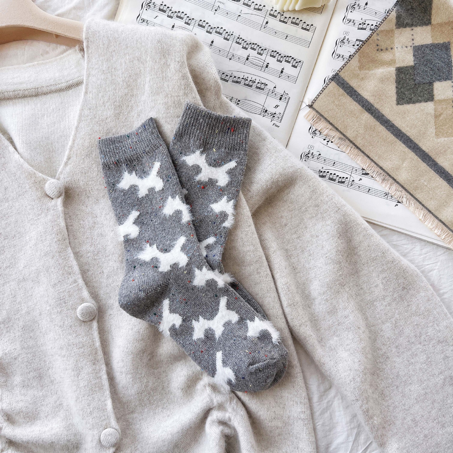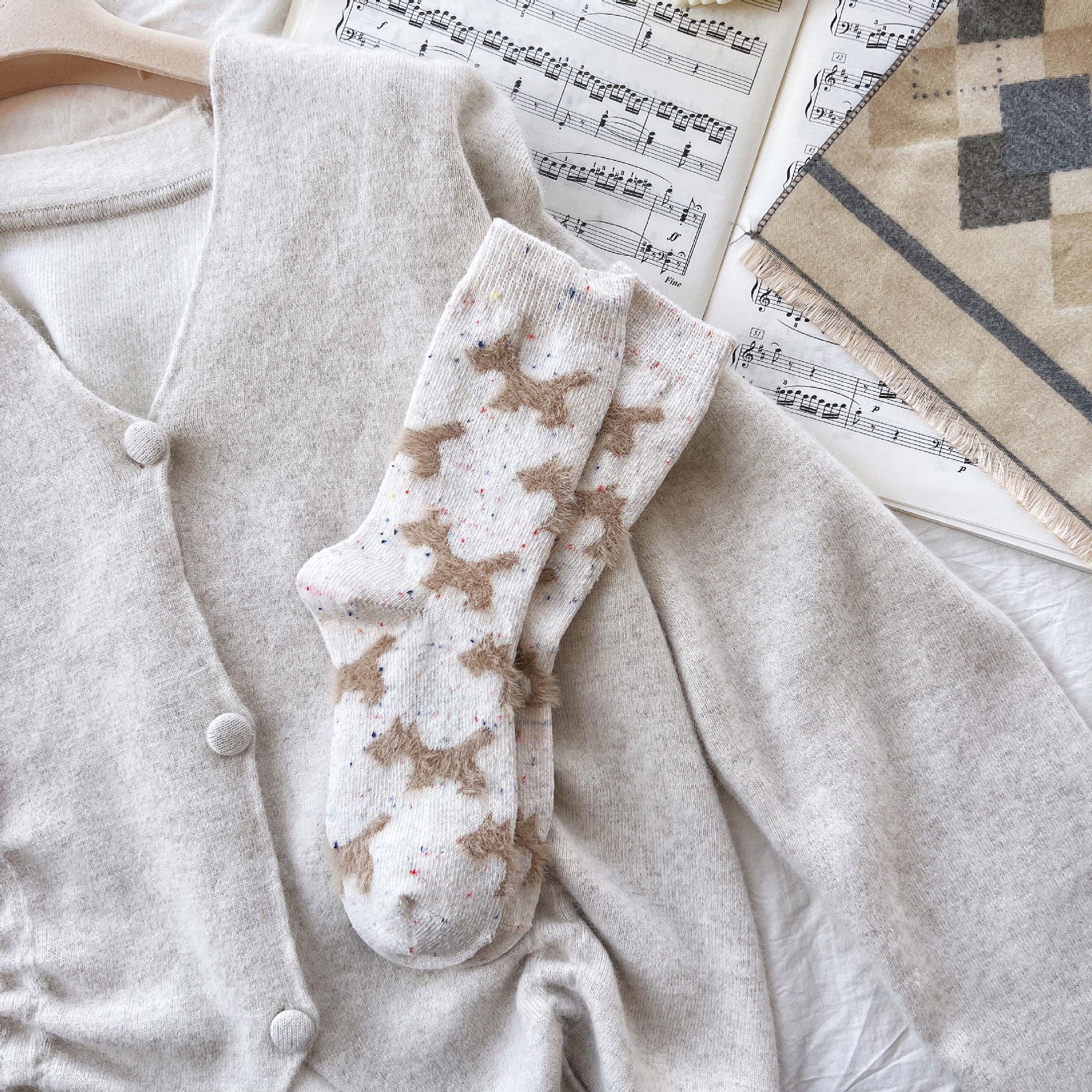 가을과 겨울 양모 양말 한국식 포인트 원사 보우 양말 여성 두꺼운 따뜻한 미드 양말 귀여운 강아지 더미 양말