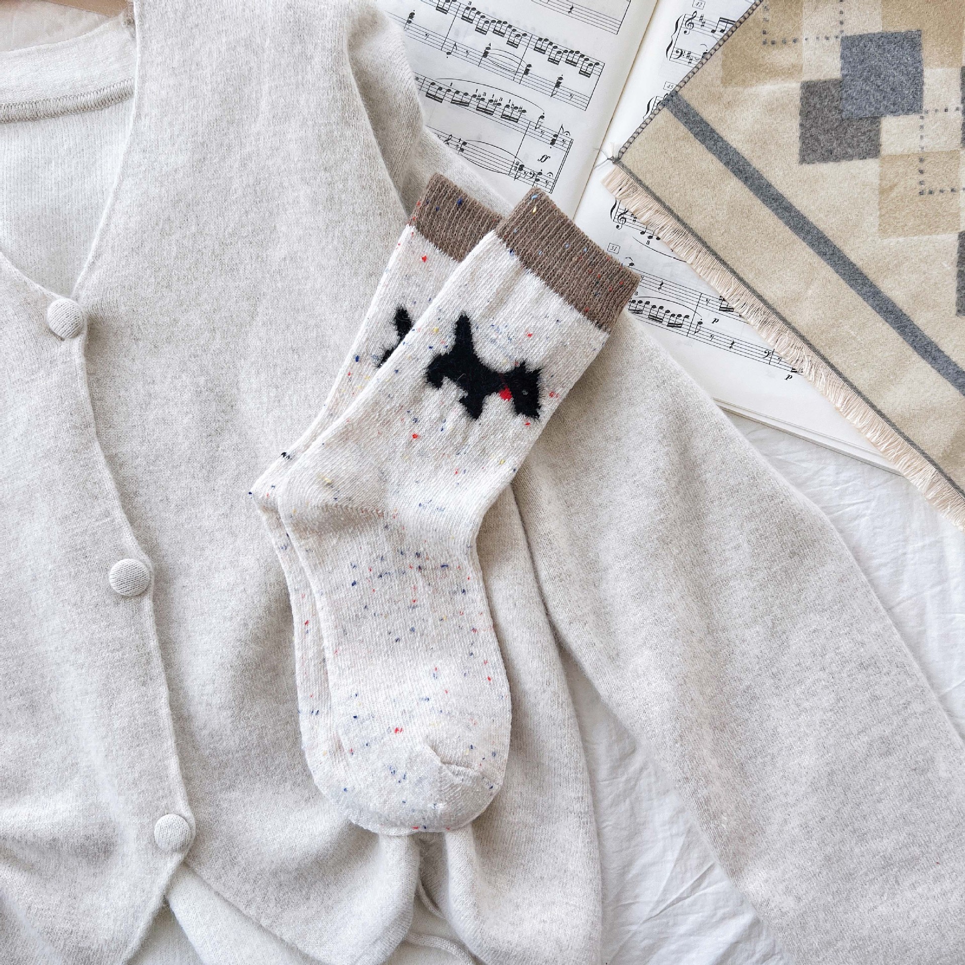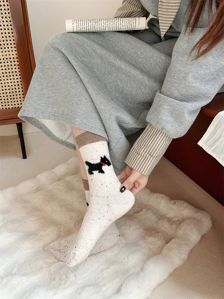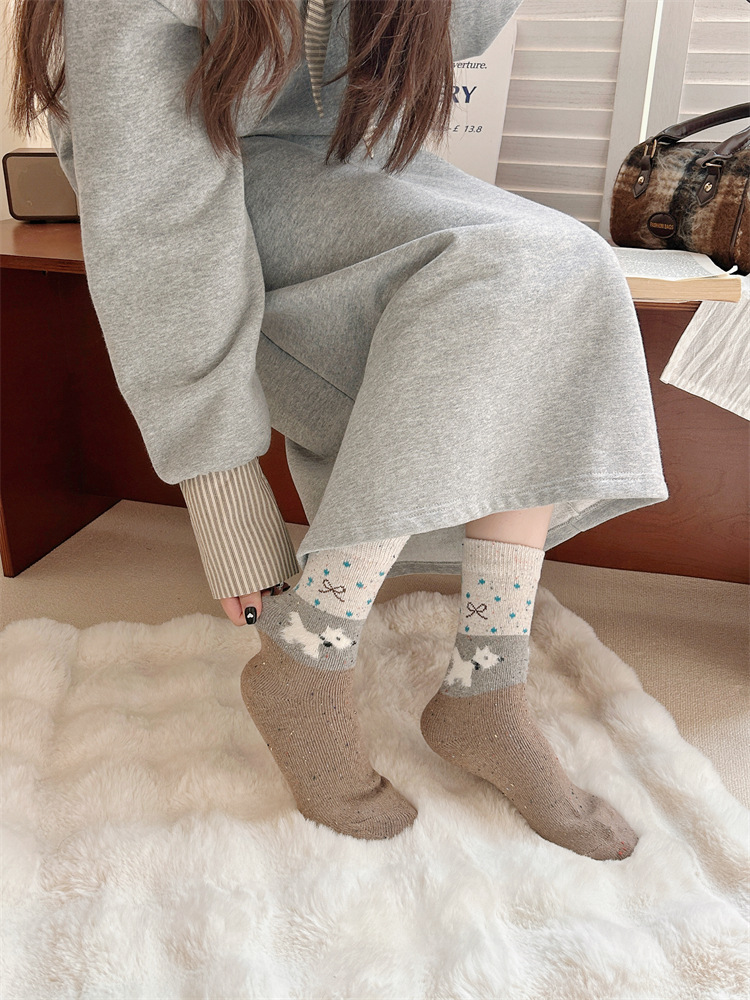 가을과 겨울 양모 양말 한국식 포인트 원사 보우 양말 여성 두꺼운 따뜻한 미드 양말 귀여운 강아지 더미 양말스토어 가기