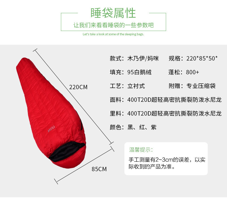(공장 스트레이트 헤어) 미라 컬러 블록 슬리핑 백 다운 슬리핑 백 미라 야외 슬리핑 백