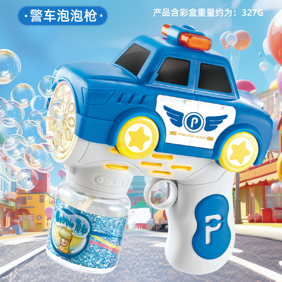 국경 간 자동 거품 총 12 홀 만화 경찰 소방차 전기 소리와 가벼운 거품 기계 어린이 장난감 도매