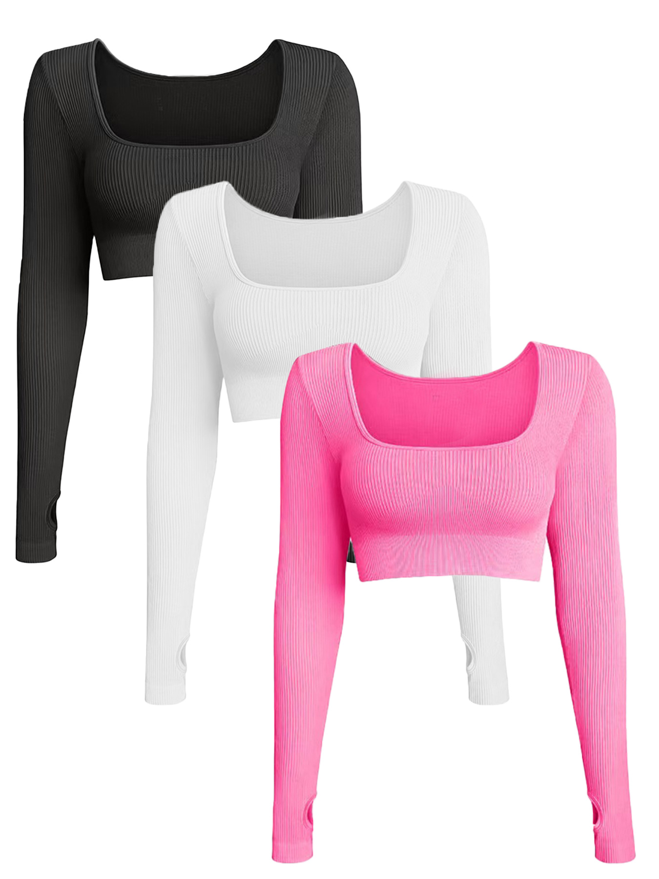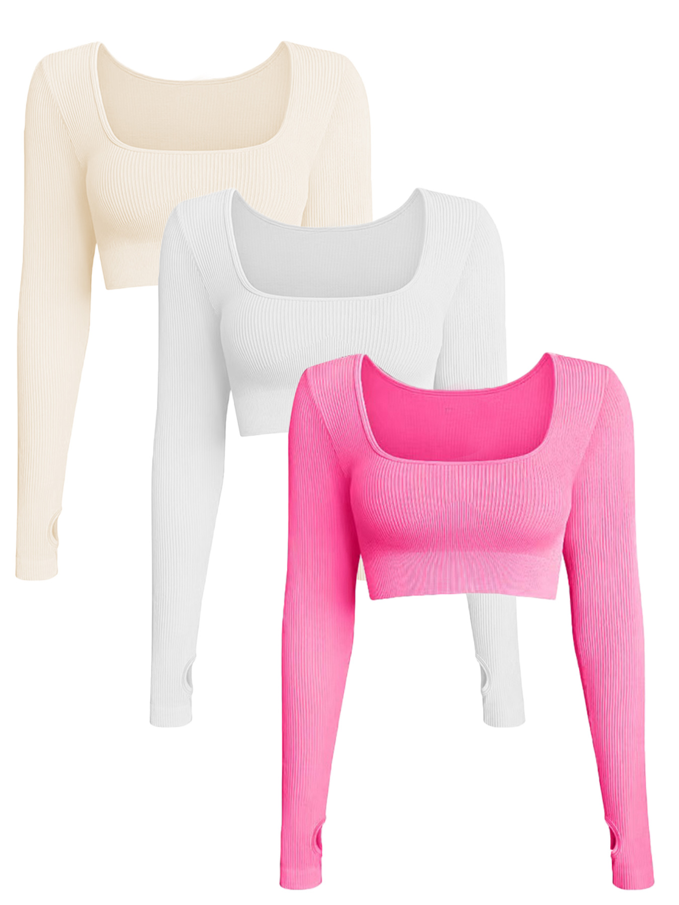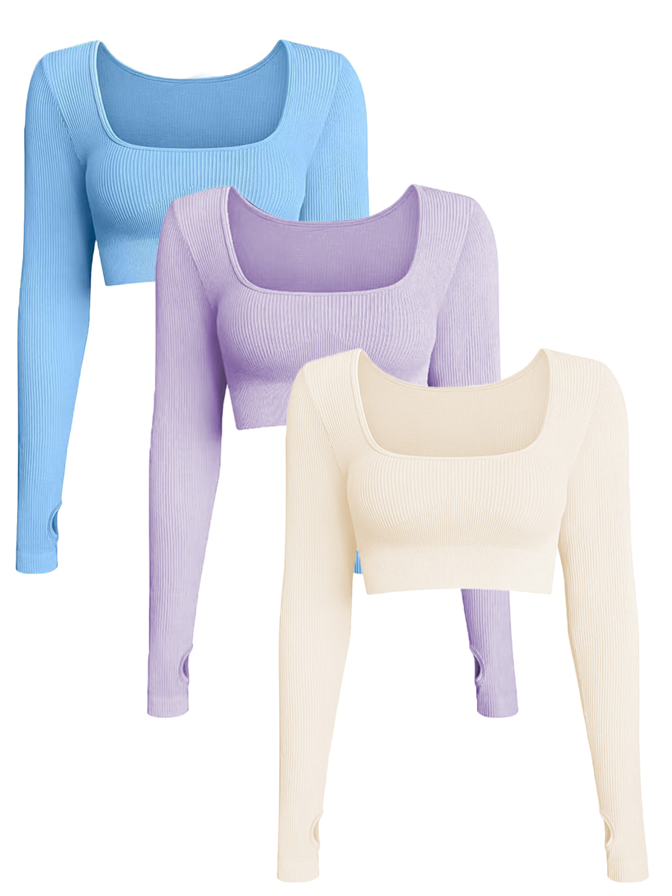 Amazon의 인기 있는 줄무늬 수분 흡수 긴팔 여성용 스포츠 타이트 피트니스 탑 요가복 3피스 세트스토어 가기