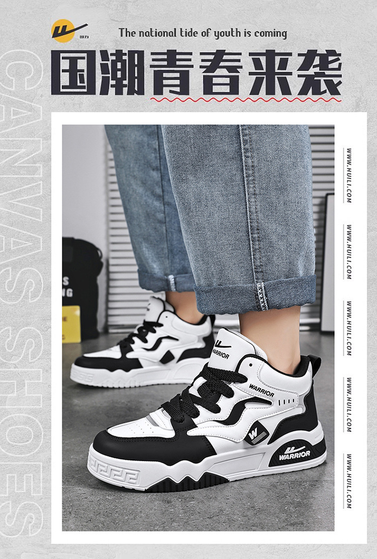 Huili 하이 탑 남성 보드 신발 2024 새로운 봄과 가을 핫 스타일 청소년 스포츠 레저 러닝 두꺼운 밑창 여행 신발