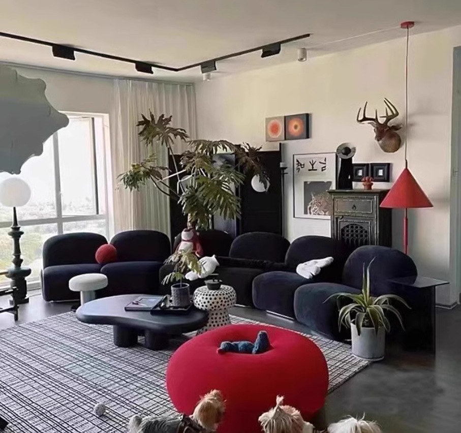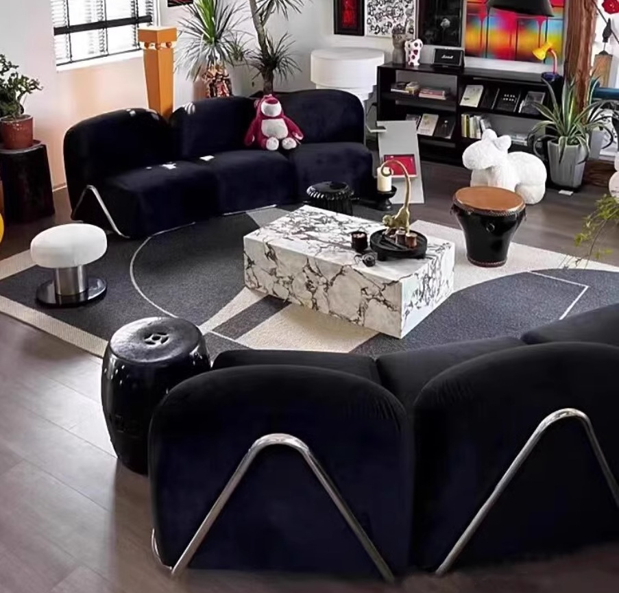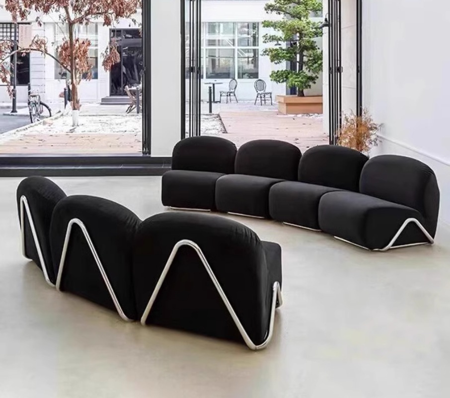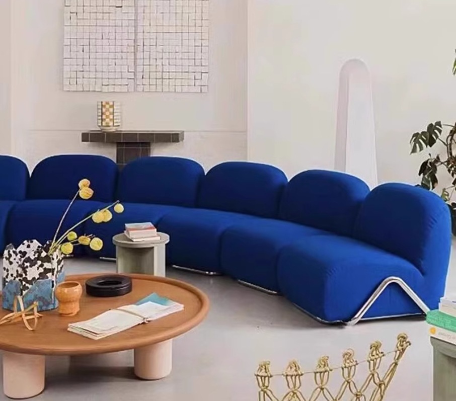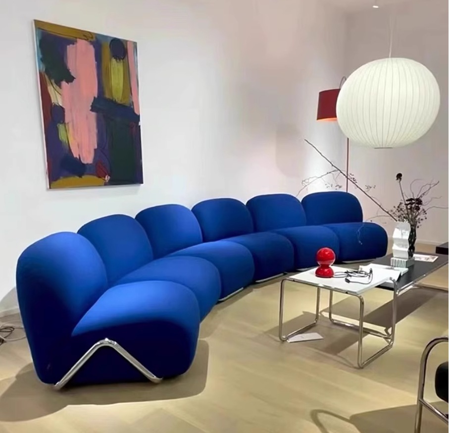 이탈리아 미니멀리스트 특수 모양의 소파 곡선 벨벳 모듈 조합 패브릭 소파스토어 가기