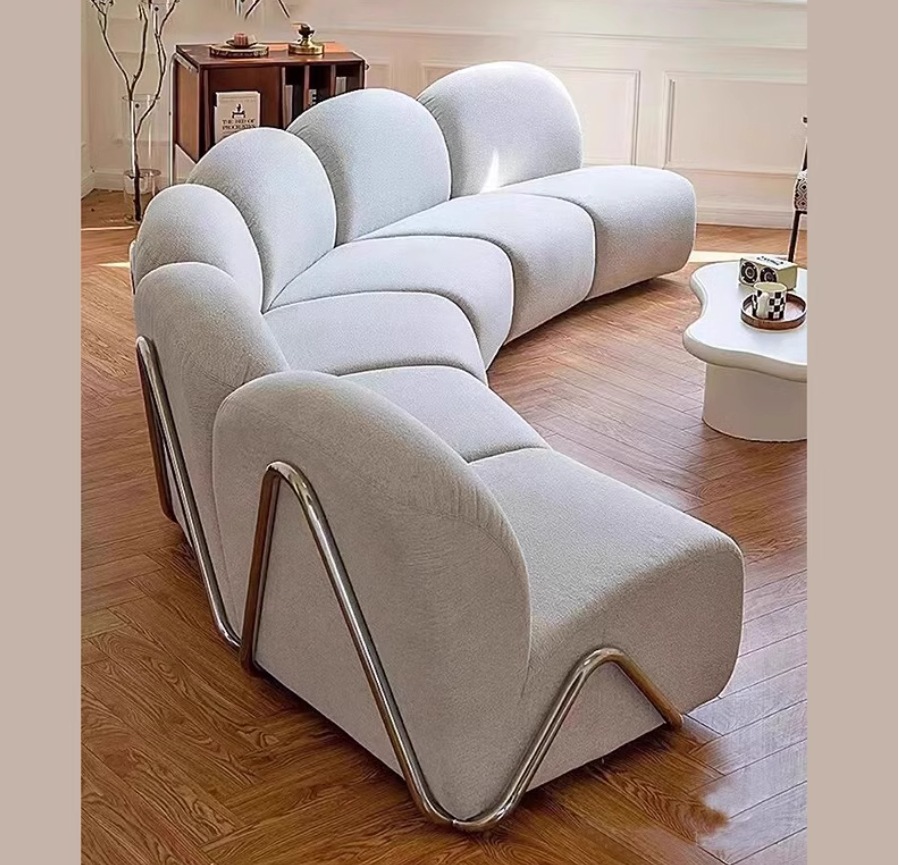 이탈리아 미니멀리스트 특수 모양의 소파 곡선 벨벳 모듈 조합 패브릭 소파