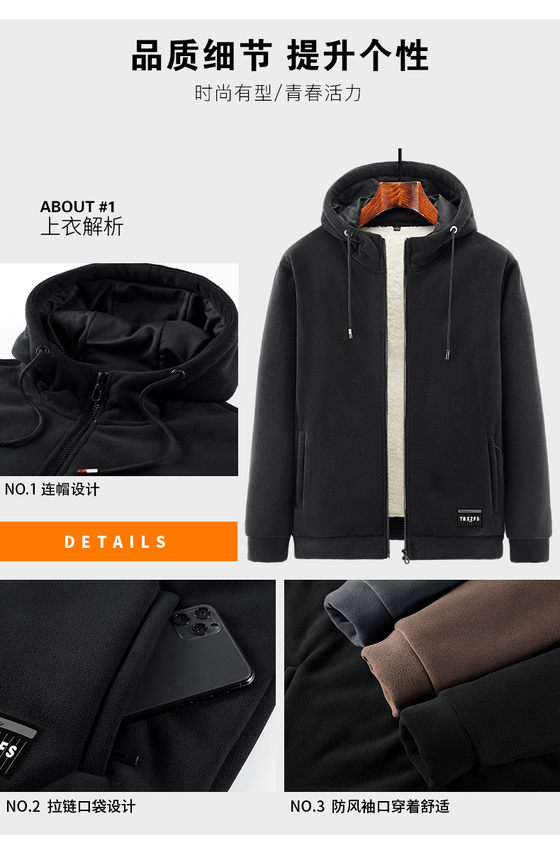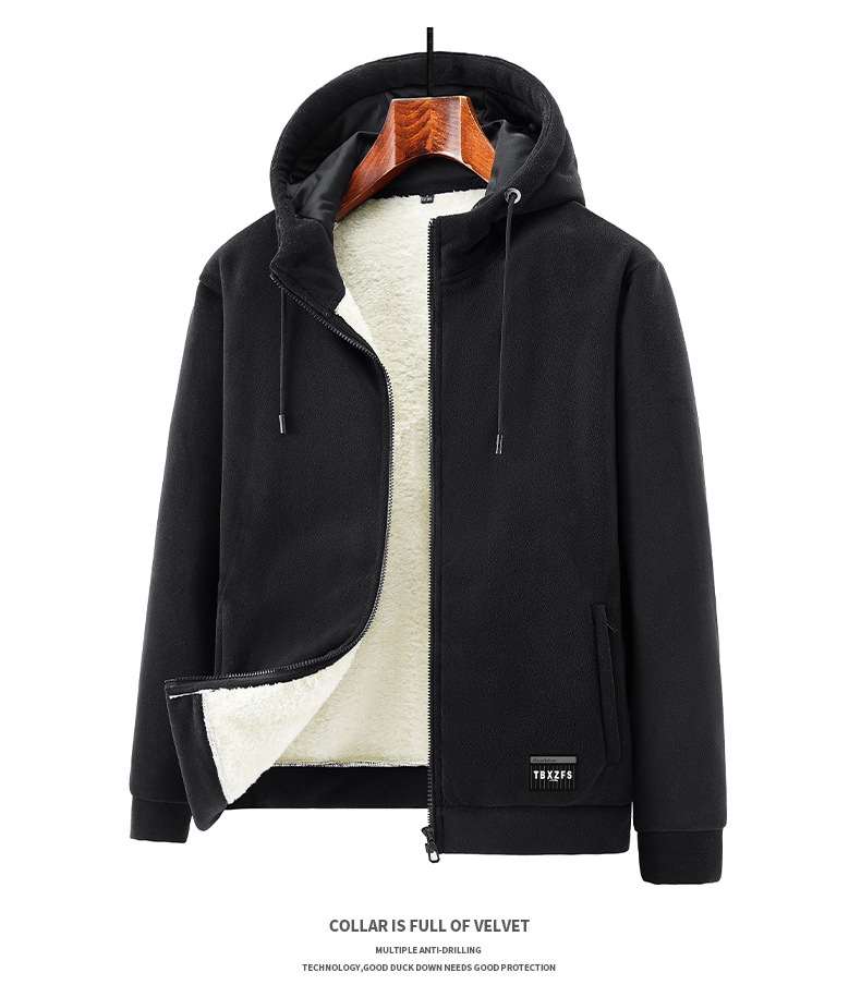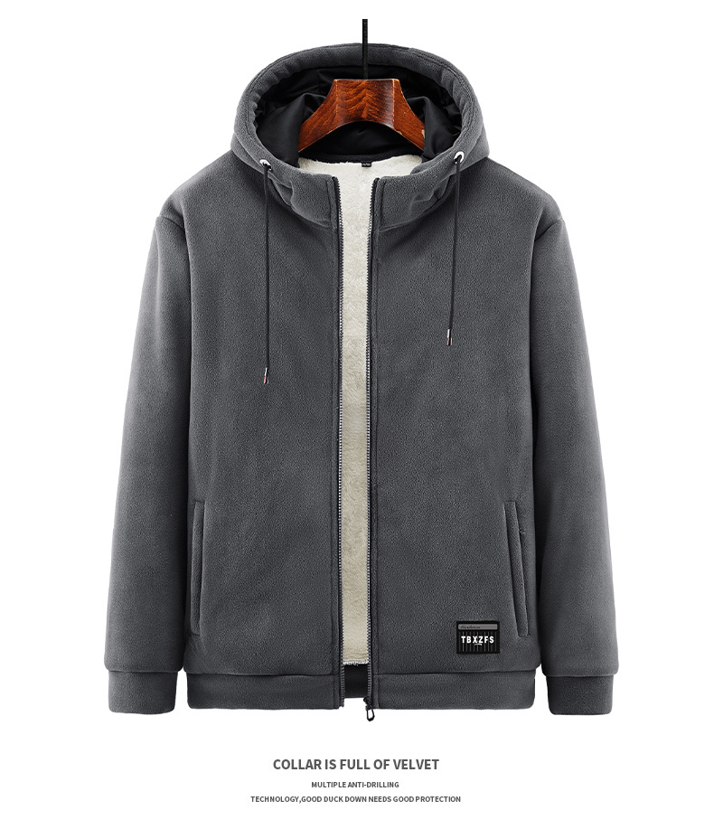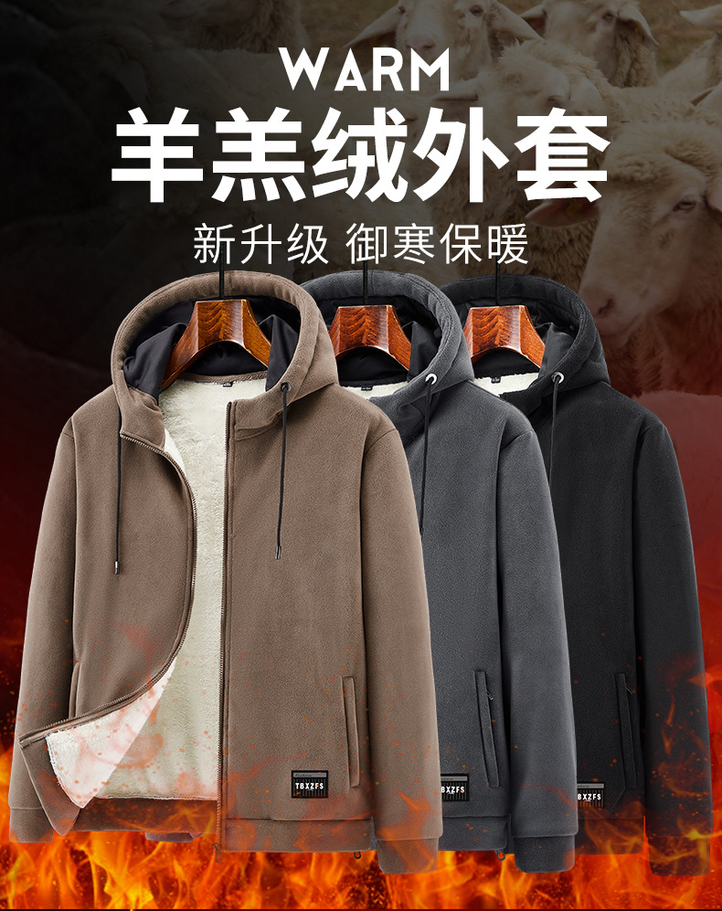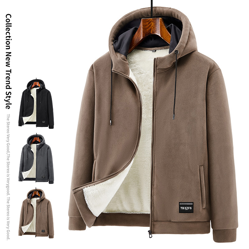 겨울 기모 후드 카디건 두꺼운 스웨터 가을과 겨울 느슨한 스포츠 캐주얼 양고기 벨벳 따뜻한 재킷 남자