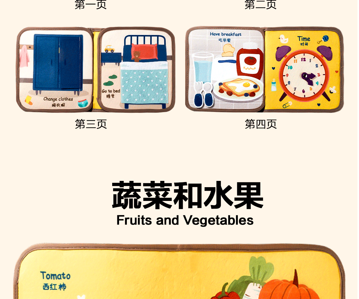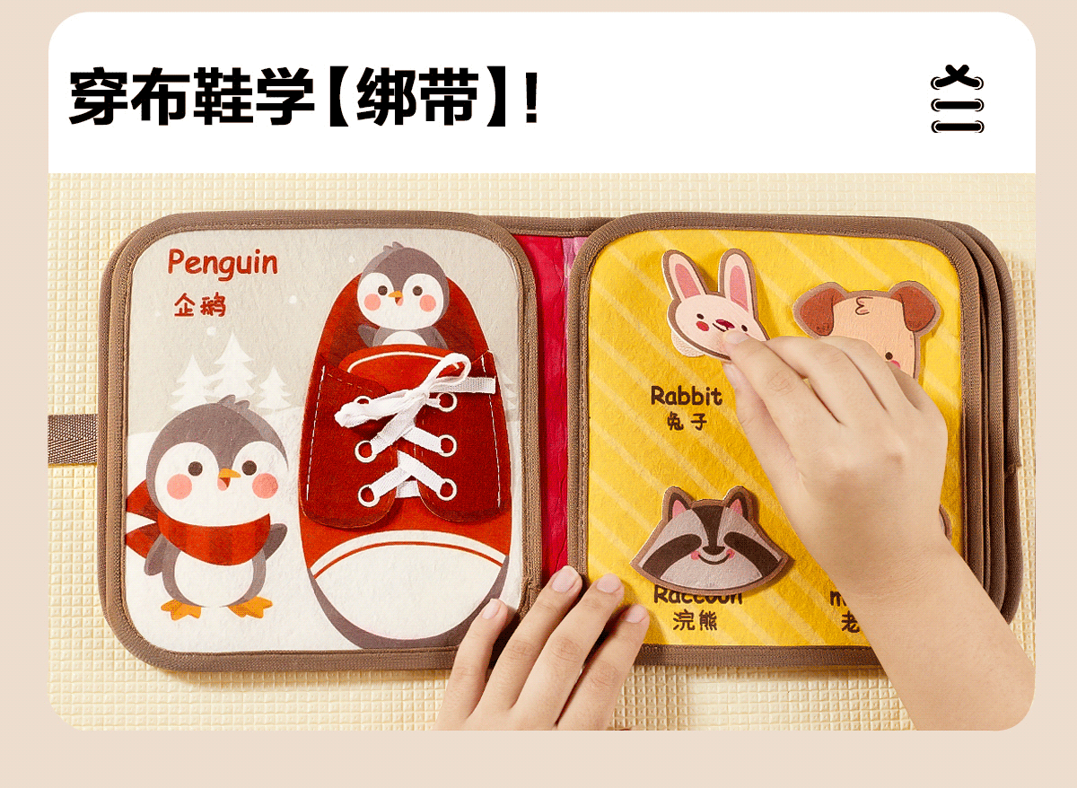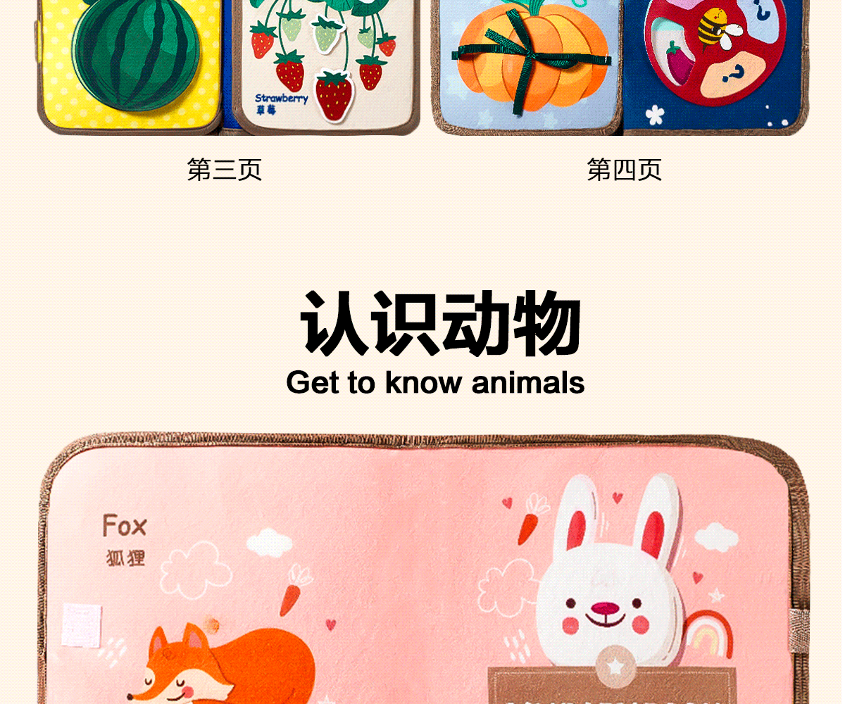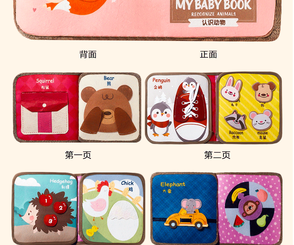 • [0-3세] 퍼즐 계몽 조용한 책 "두꺼워지고 페이지가 추가됨"(벨크로 직접 부착)