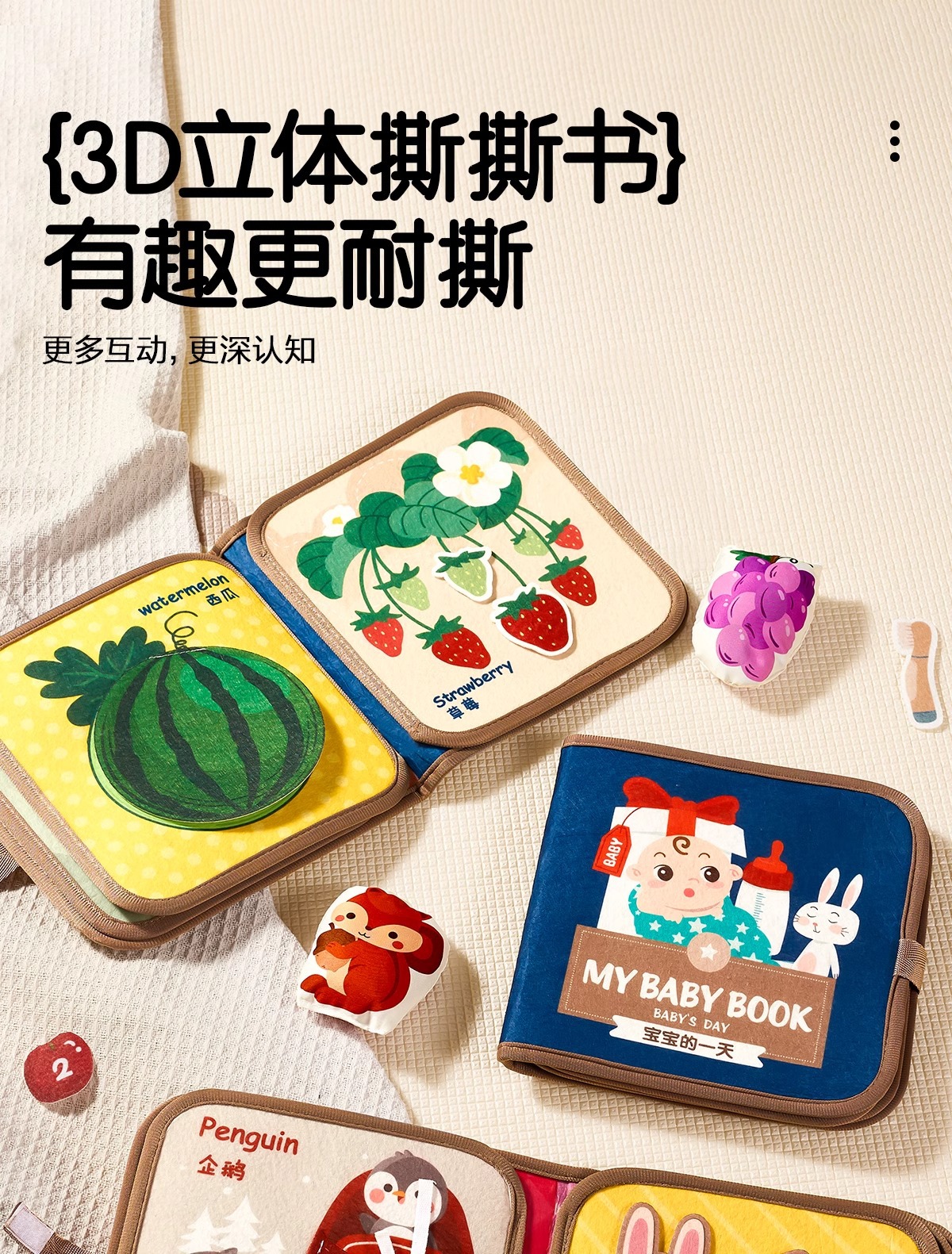 책 찢어 아기 아기 조기 교육 천 책 썩지 않도록 찢어서 6 개월 8 후크와 루프 장난감 조용한 책 깨달음스토어 가기