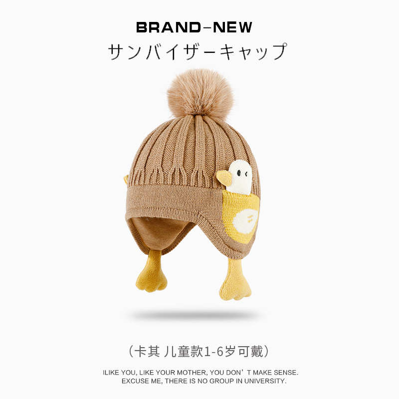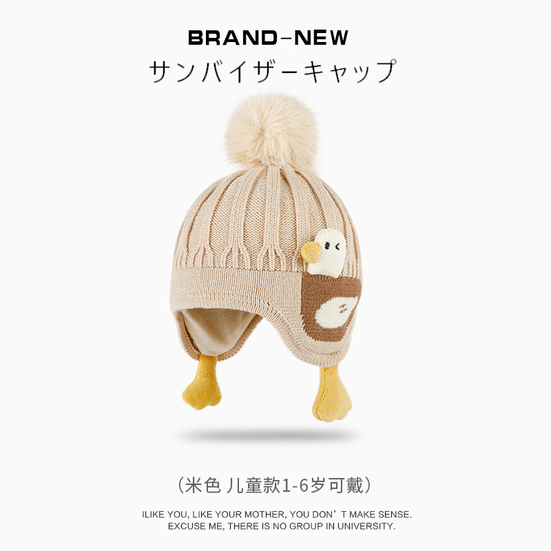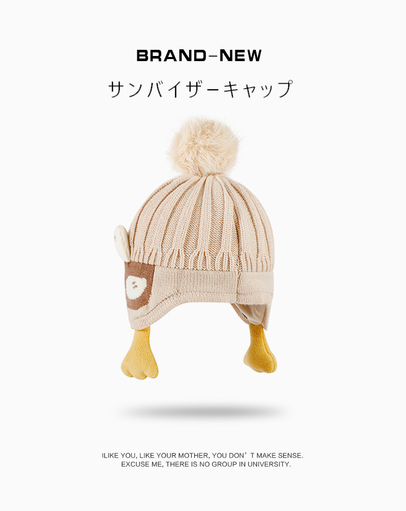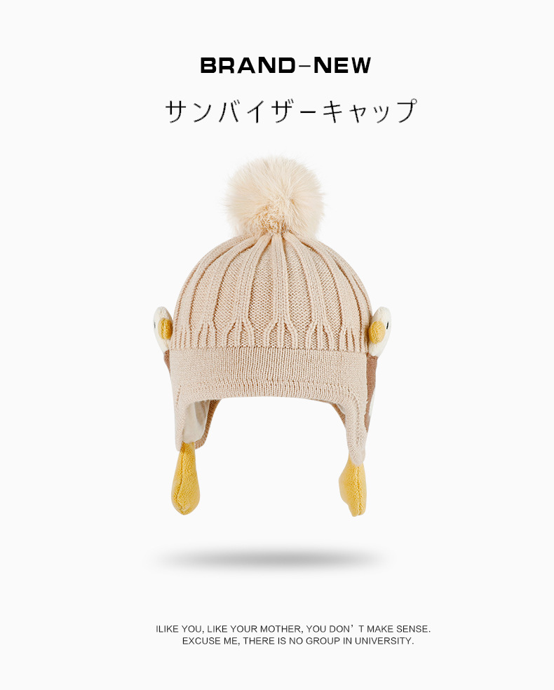 어린이 모자 가을과 겨울 만화 귀여운 소녀의 울 모자 방풍 따뜻한 귀 보호 모자 소년의 니트 모자