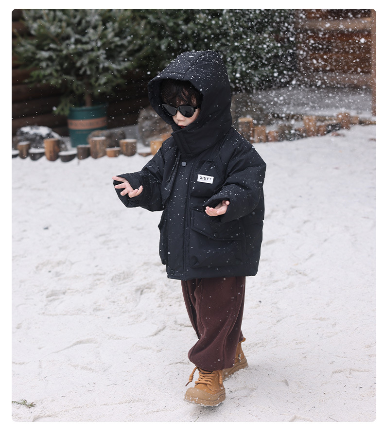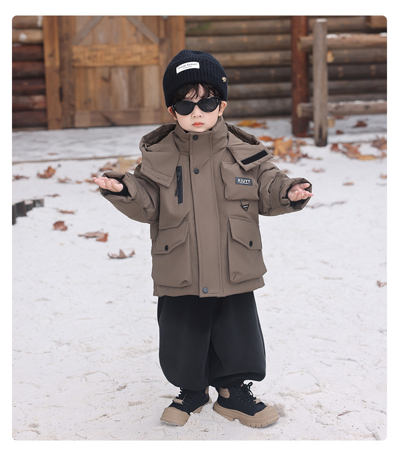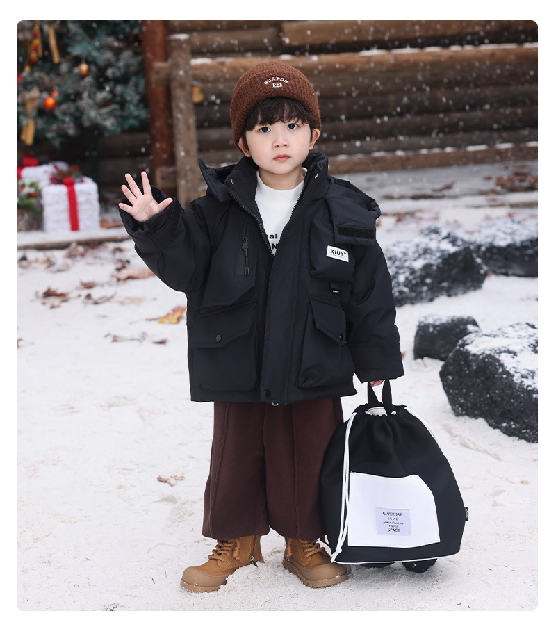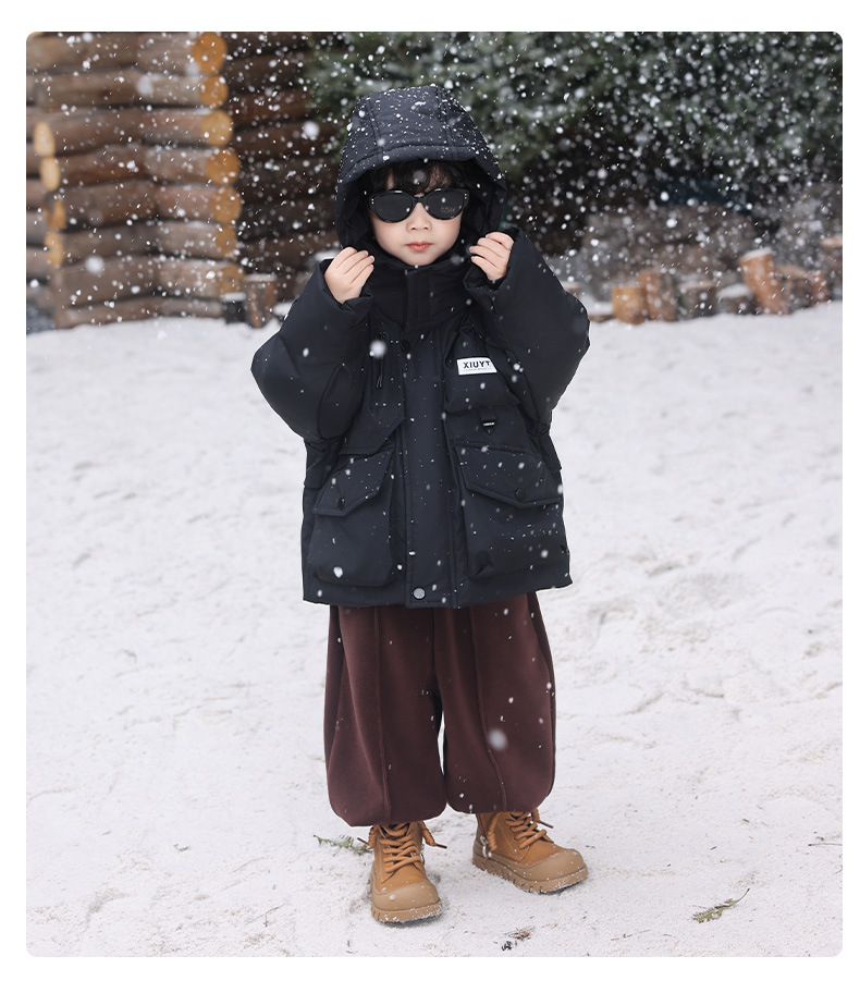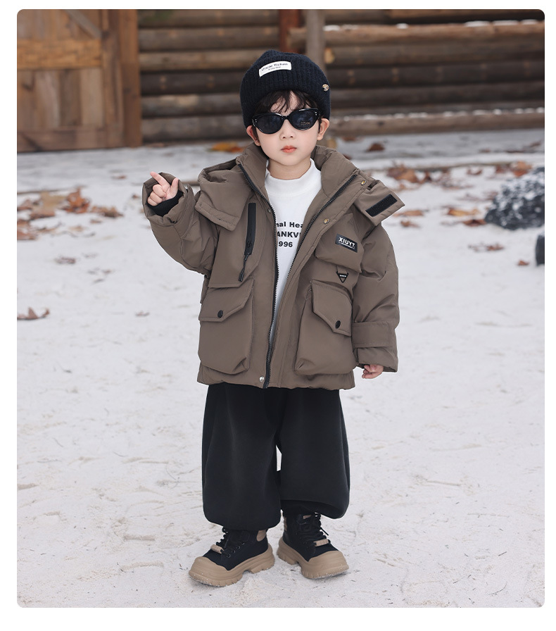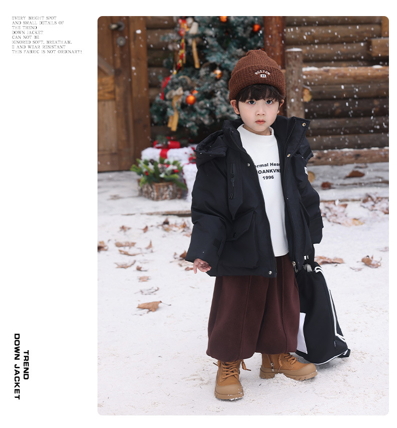 남자들의 겨울 두꺼운 다운 재킷 2024 새로운 어린이 잘 생긴 흰 오리 따뜻한 코튼 코트 어린이 코트
