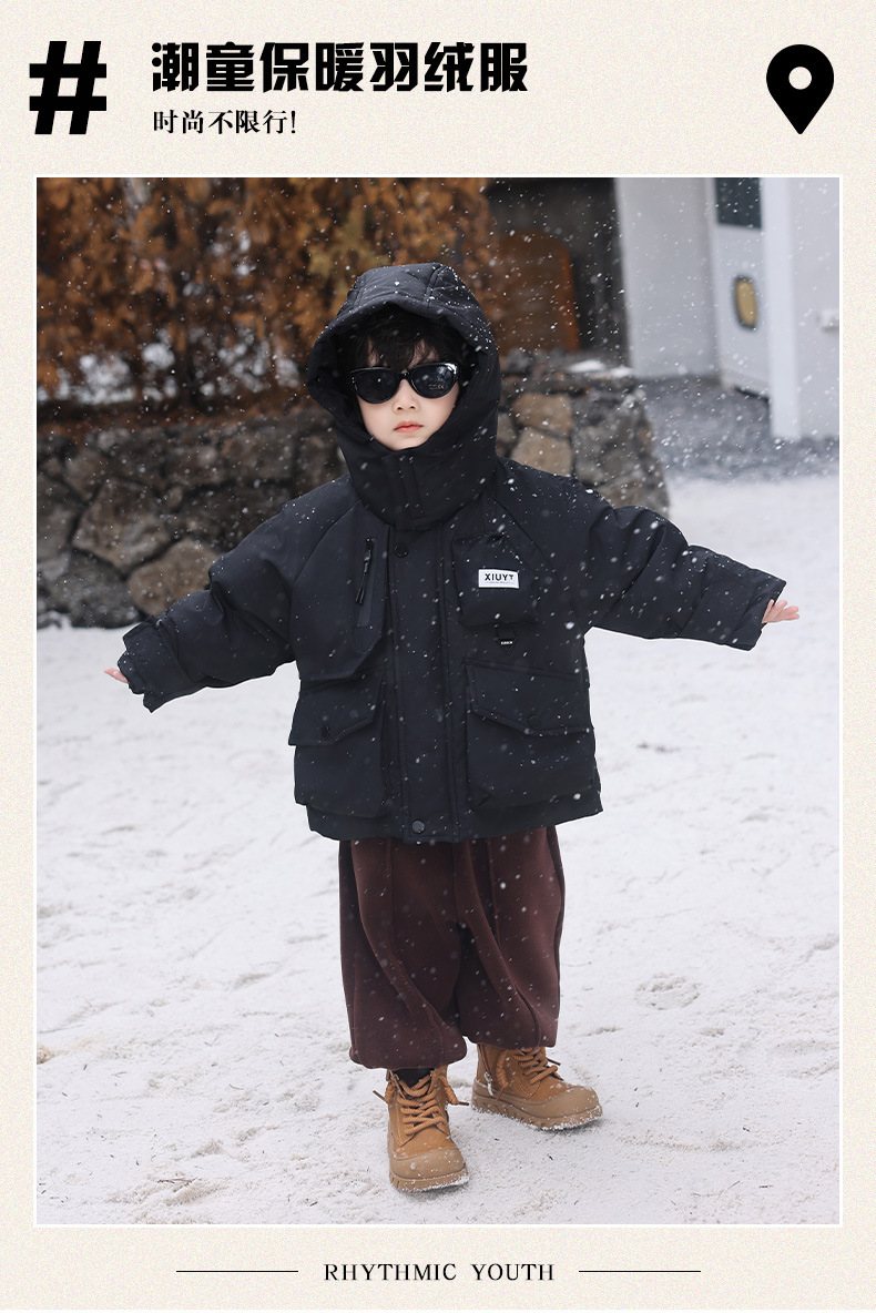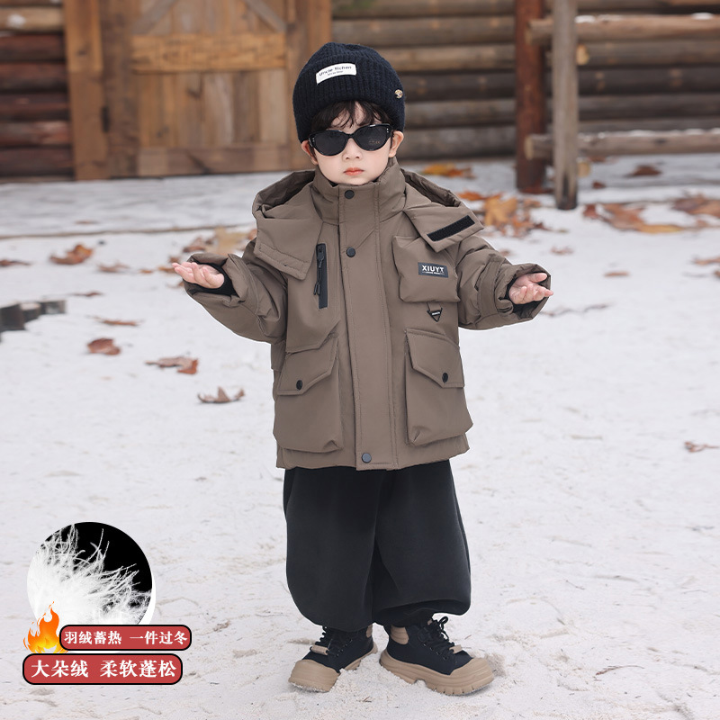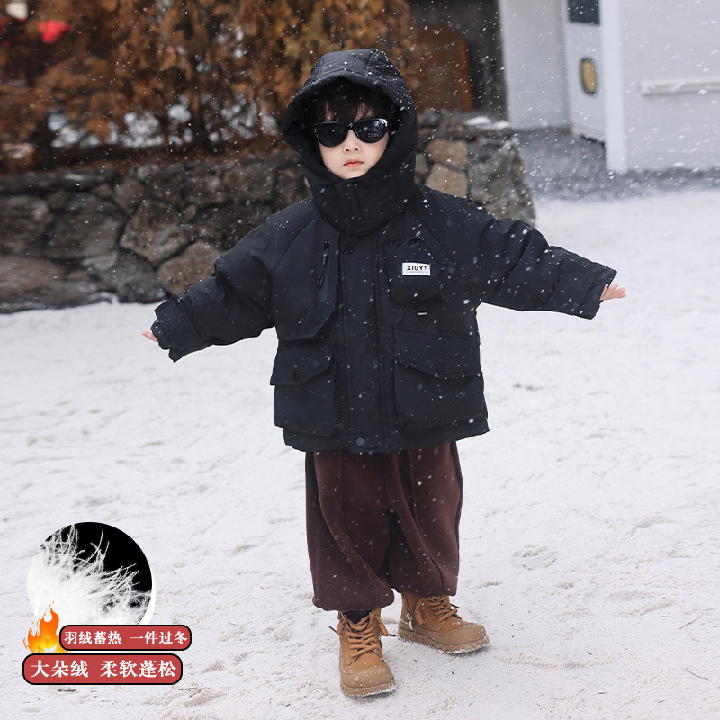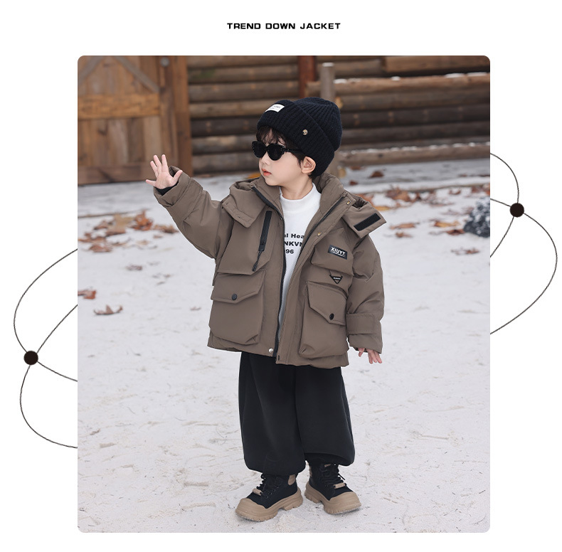 남자들의 겨울 두꺼운 다운 재킷 2024 새로운 어린이 잘 생긴 흰 오리 따뜻한 코튼 코트 어린이 코트스토어 가기