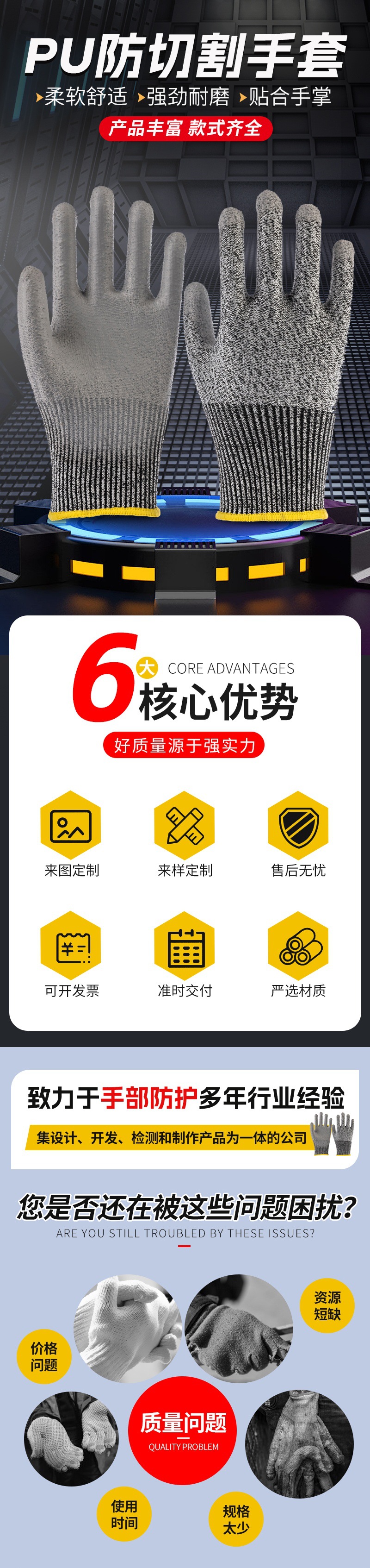 5 학년 PU 안티 커팅 장갑 두꺼운 마모 방지 미끄럼 방지 스틸 유리 공장 작업 장갑스토어 가기