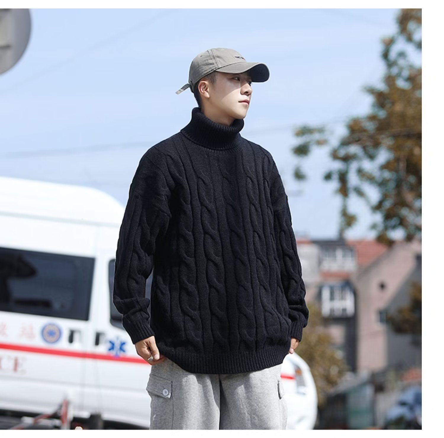 터틀넥 스웨터 남자의 가을과 겨울 한국 스타일 두꺼운 단색 따뜻한 니트 스웨터 트렌디 브랜드 내부 겨울베이스 셔츠스토어 가기