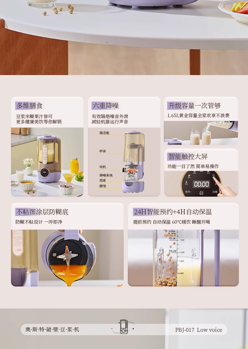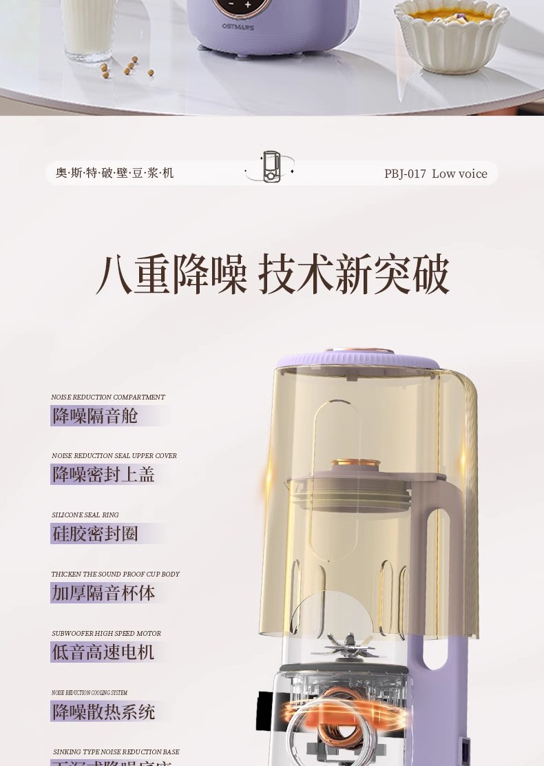 독일 Ostmars 벽 깨는 기계 3-4 가족 필터없는 대두 우유 기계 대용량 다기능 완전 자동 요리 기계