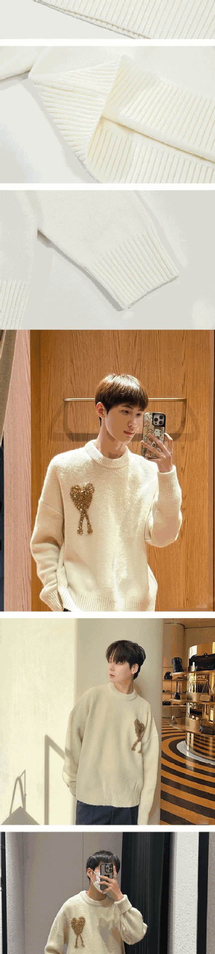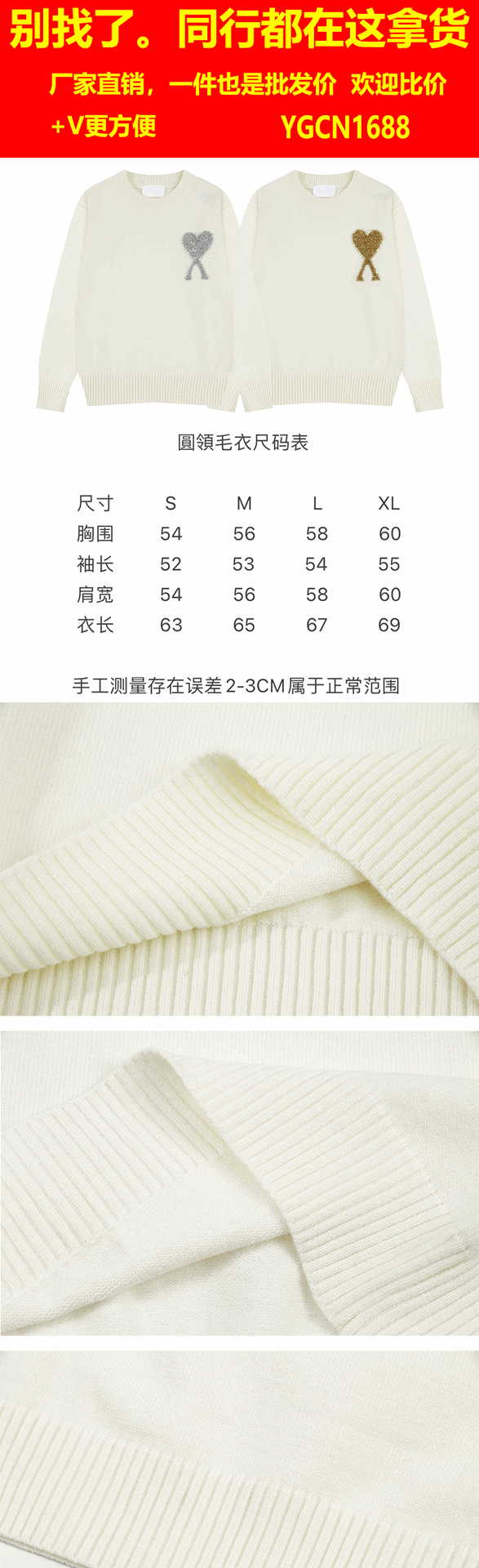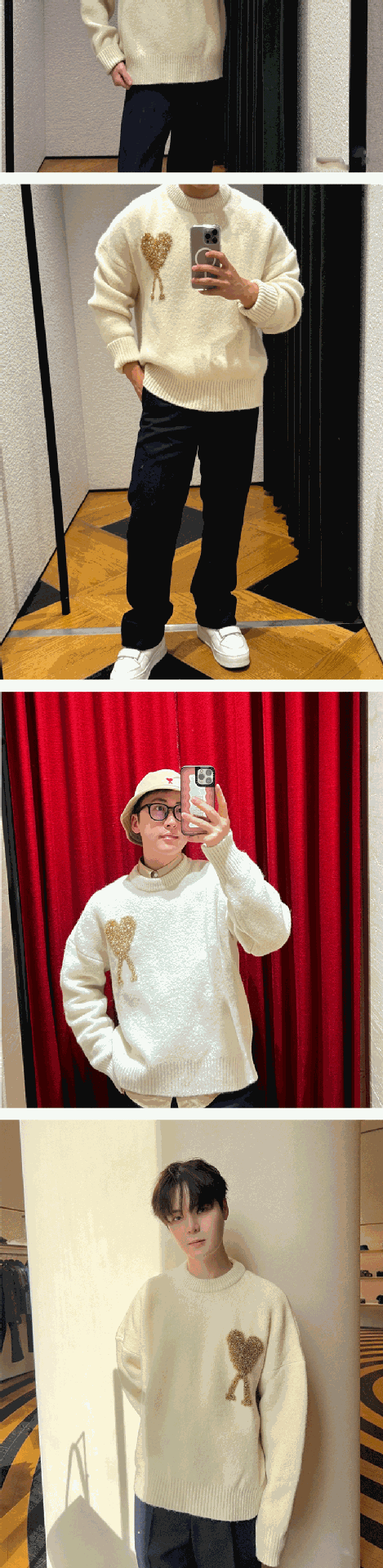 국경 간 Ami 조개 스웨터 클래식 골드 실 큰 사랑 카디건 캐주얼 남성과 여성의 둥근 목 풀오버 스웨터스토어 가기