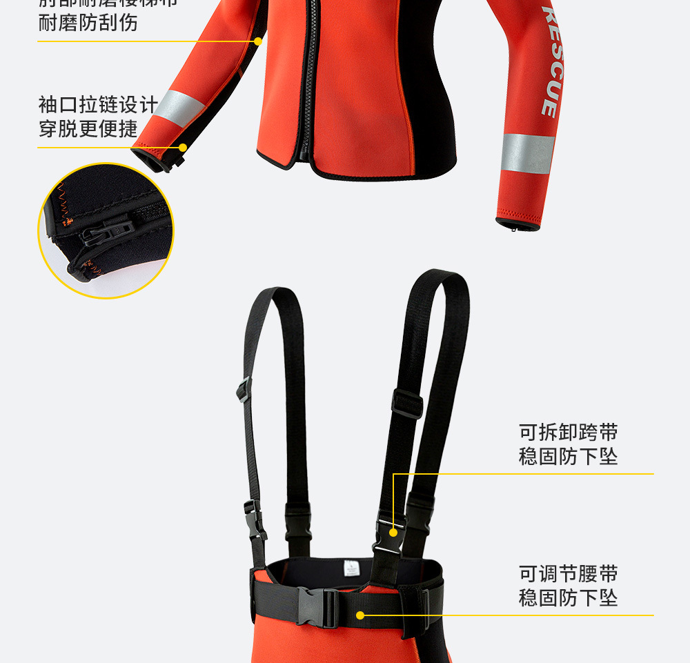 물 구조 장비 젖은 세트 3MM 분할 다이빙 세트 반사 안전 수중 따뜻한 소방 용품 냉장 보호
