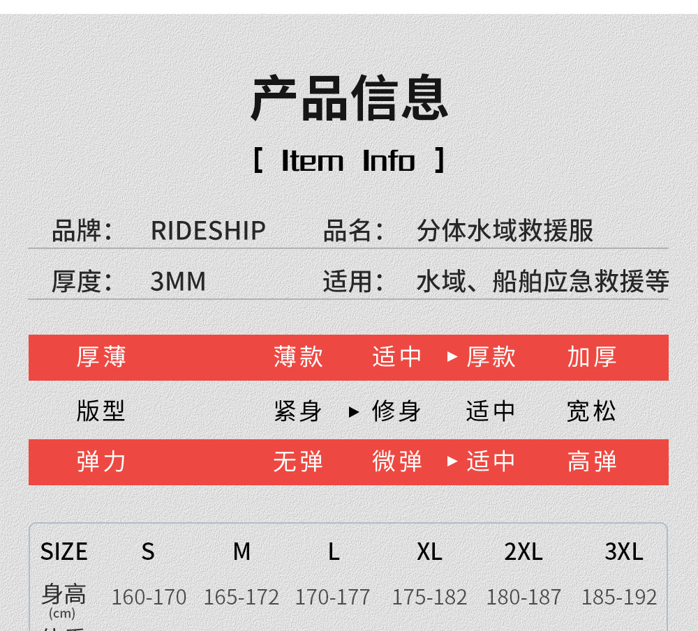 물 구조 장비 젖은 세트 3MM 분할 다이빙 세트 반사 안전 수중 따뜻한 소방 용품 냉장 보호스토어 가기