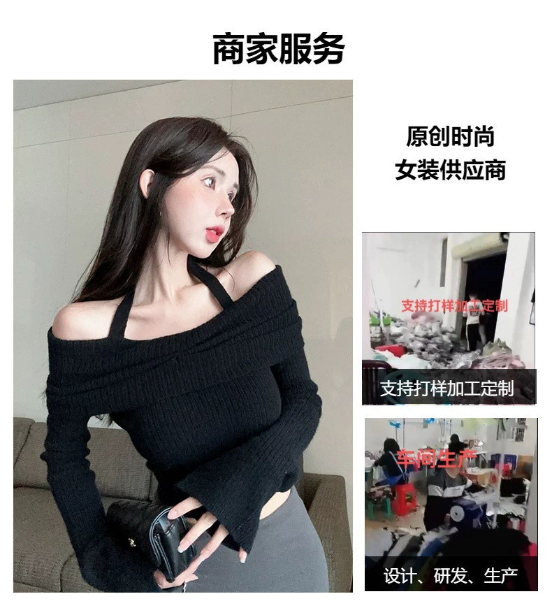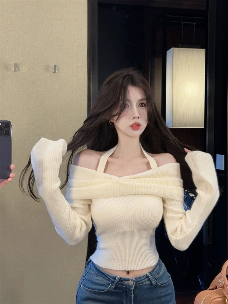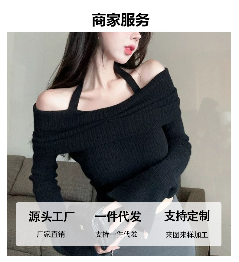순수한 향신료 소녀 오프 숄더 섹시한 목 탑 여성의 가을과 겨울 뿔 소매베이스 셔츠 내부 어깨 스웨터