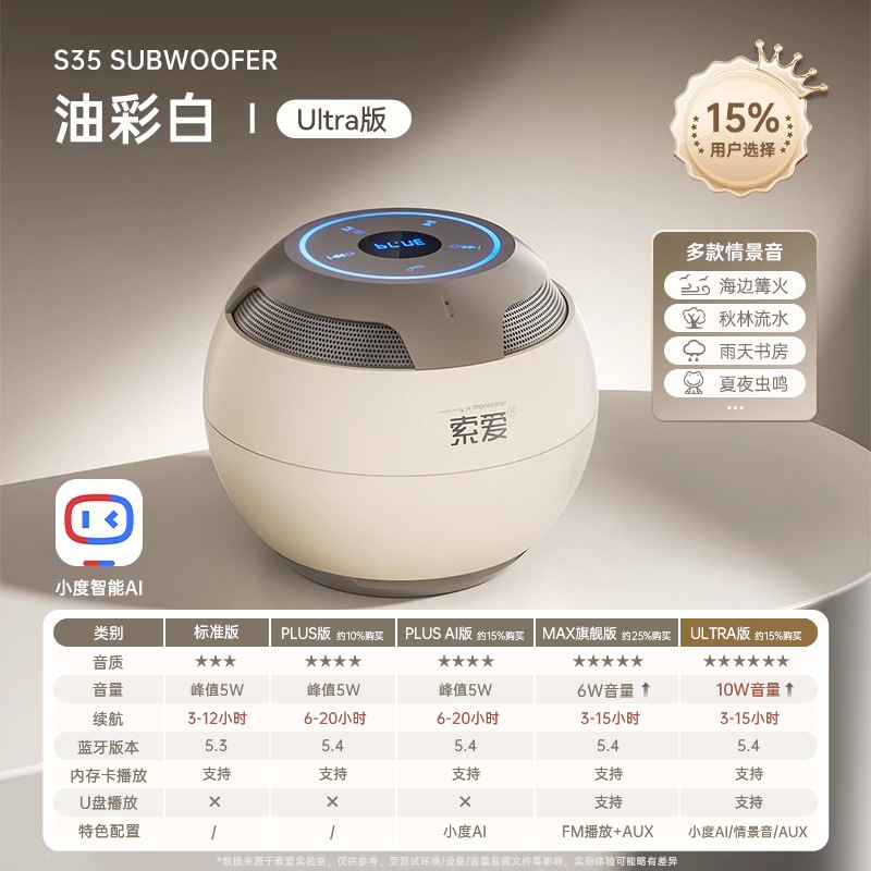 • S35Ultra 오일 컬러 화이트 [Xiaodu AI + 10W 전력] Bluetooth 플러그인 카드 U 디스크