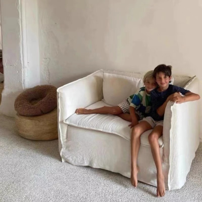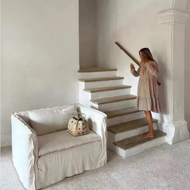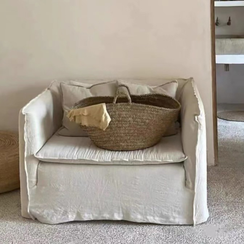 조용한 프랑스 스타일 레트로 완전히 리모델링 및 세탁 린넨 패브릭 홈스테이 호텔 싱글 다운 작은 아파트 디자이너 소파