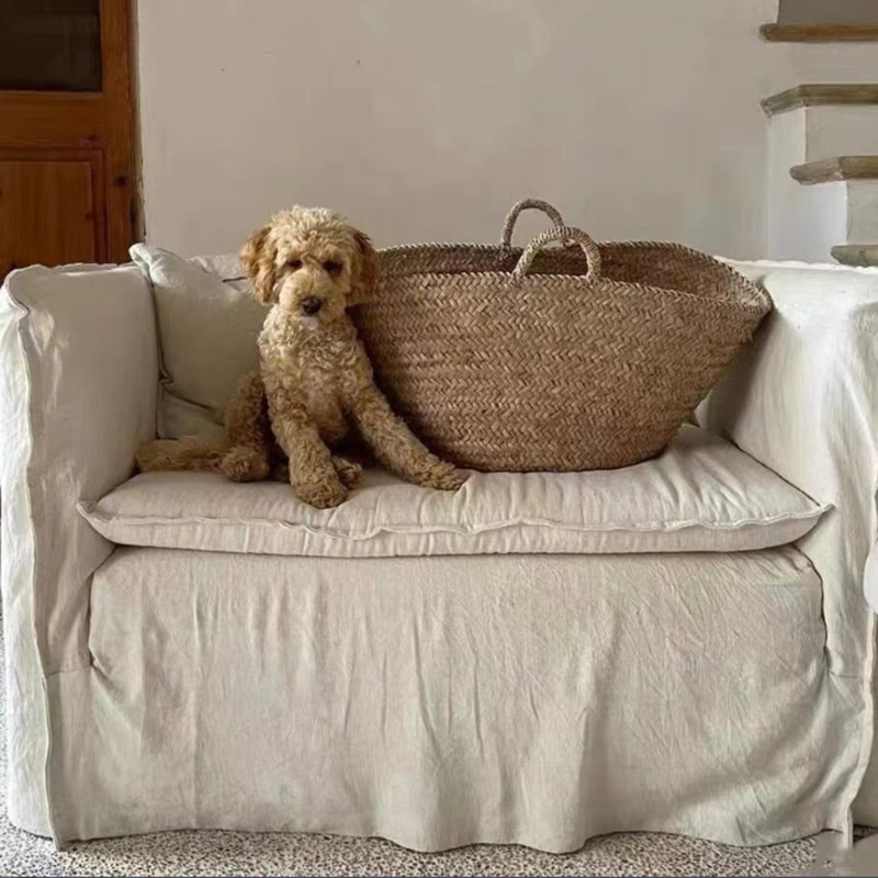 조용한 프랑스 스타일 레트로 완전히 리모델링 및 세탁 린넨 패브릭 홈스테이 호텔 싱글 다운 작은 아파트 디자이너 소파스토어 가기