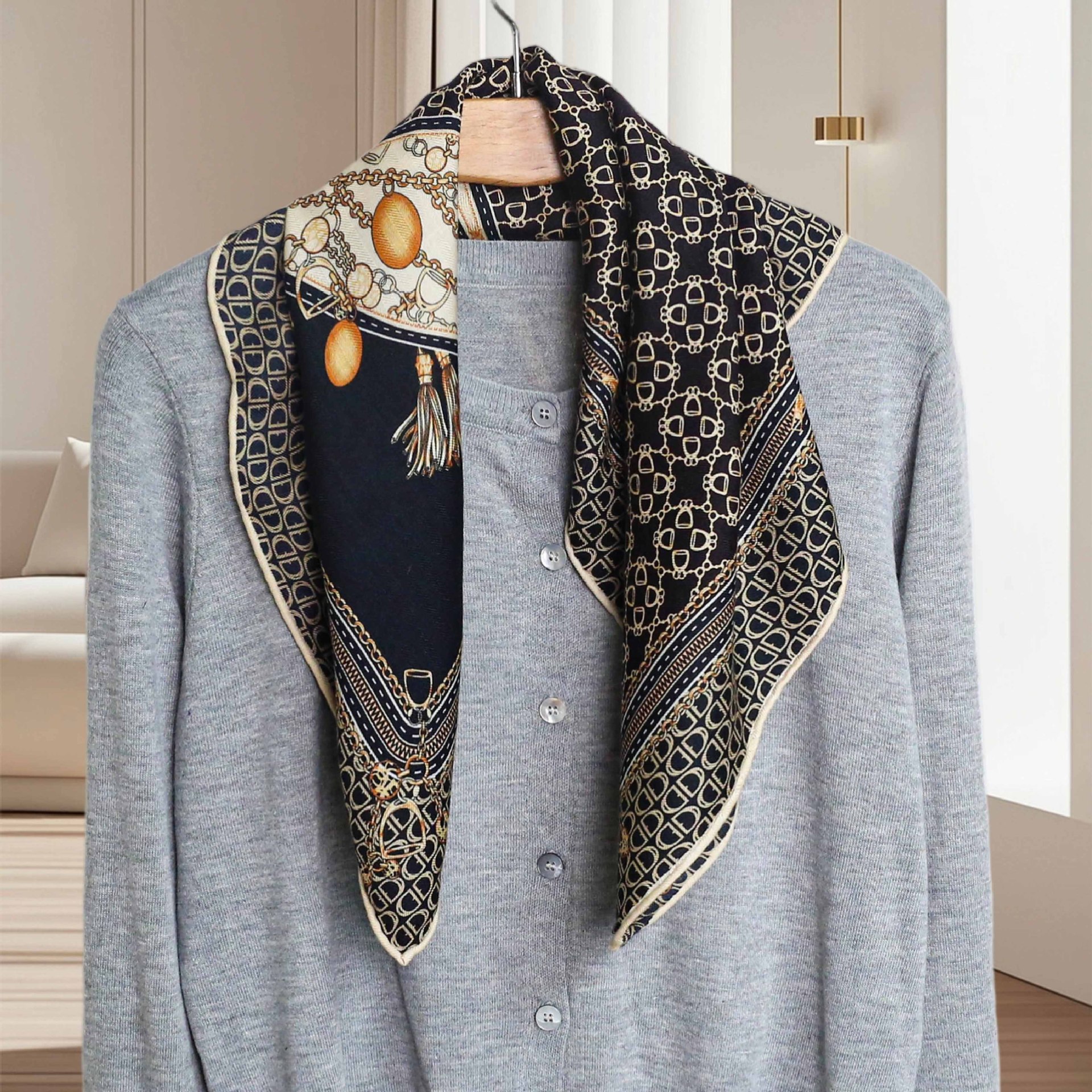[크리스마스 이브] 실크 울 70 양면 다른 색상 수제 컬링 패션 다용도 뽕나무 실크 울 스퀘어 타월