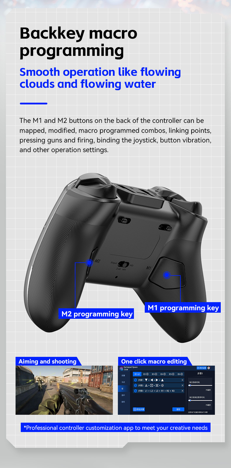 1.搭配霍尔摇杆+双切扳机键:微动扳机+霍尔扳机。