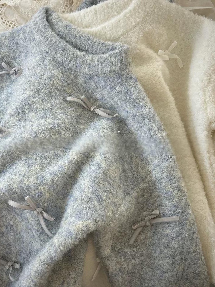 소녀들의 가을과 겨울 달콤한 활 두꺼운 니트웨어 어린이 겨울은 따뜻한 연약한 와시 스웨터 소녀 루즈 스웨터