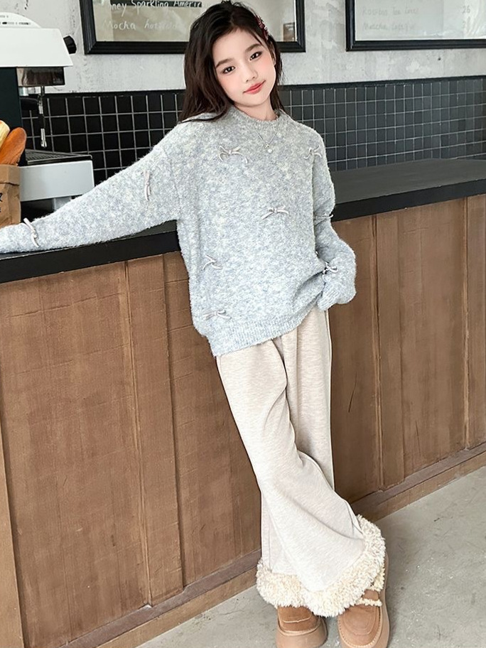 소녀들의 가을과 겨울 달콤한 활 두꺼운 니트웨어 어린이 겨울은 따뜻한 연약한 와시 스웨터 소녀 루즈 스웨터스토어 가기