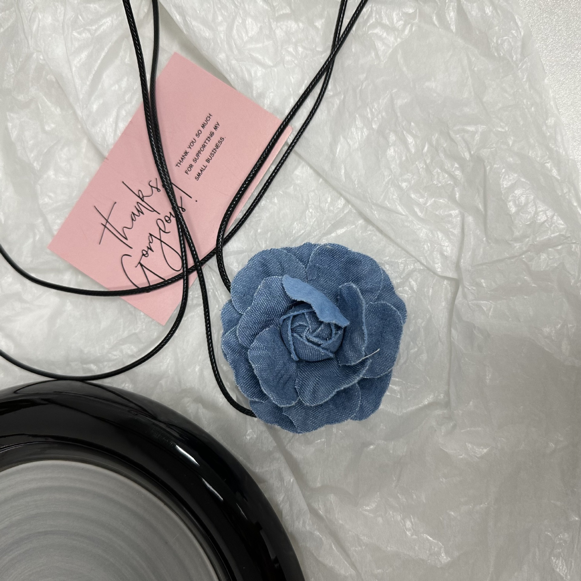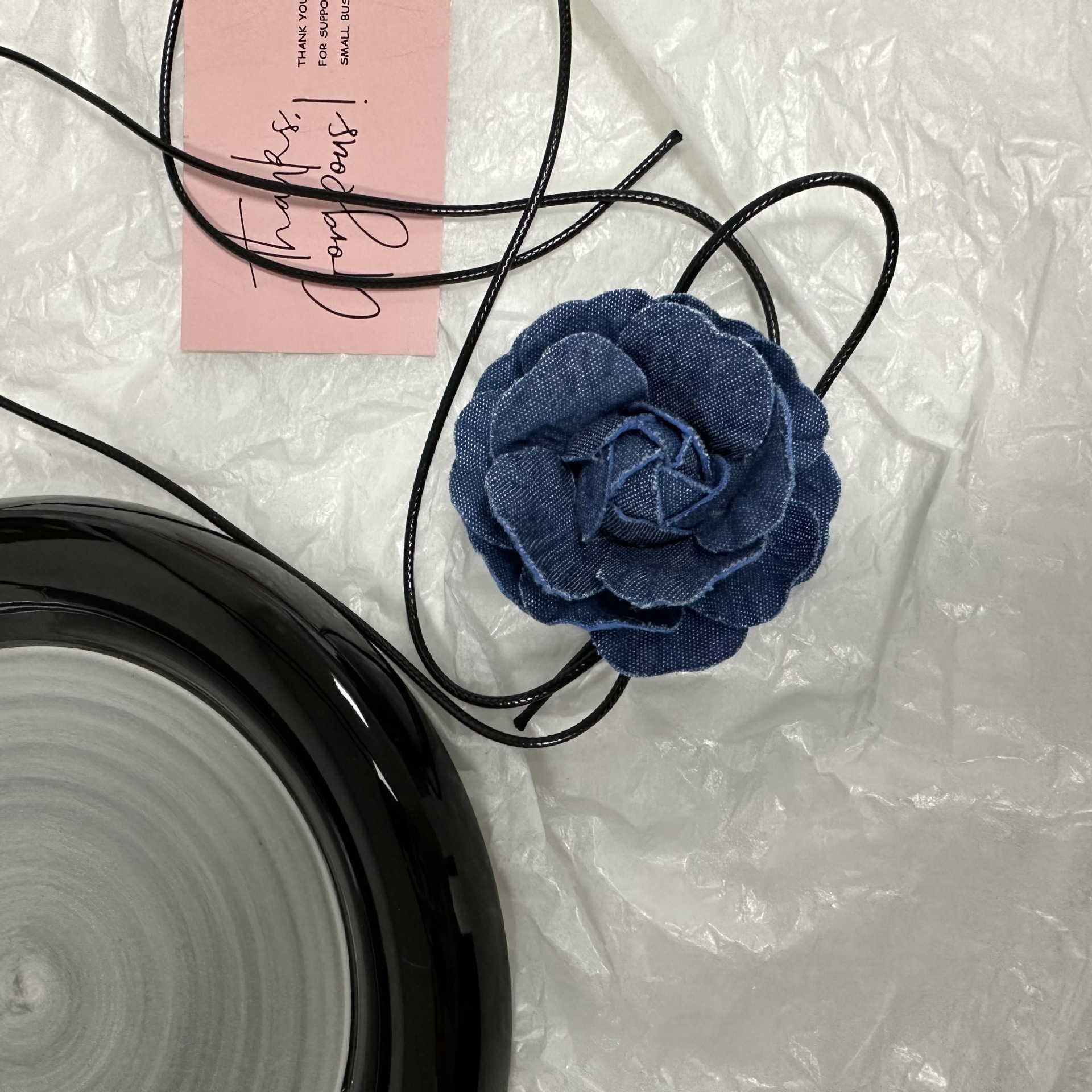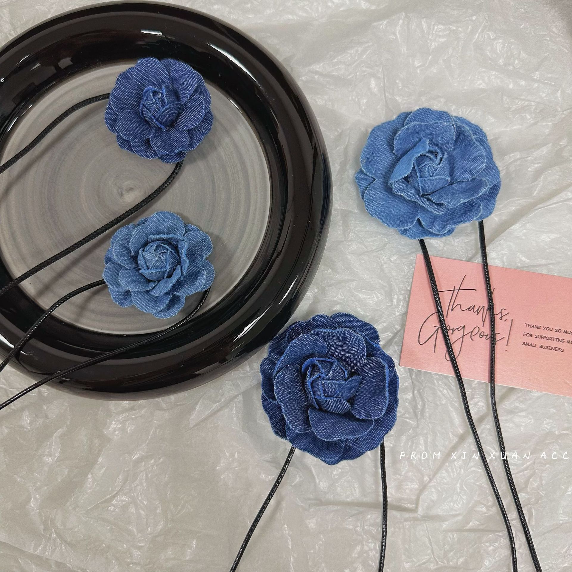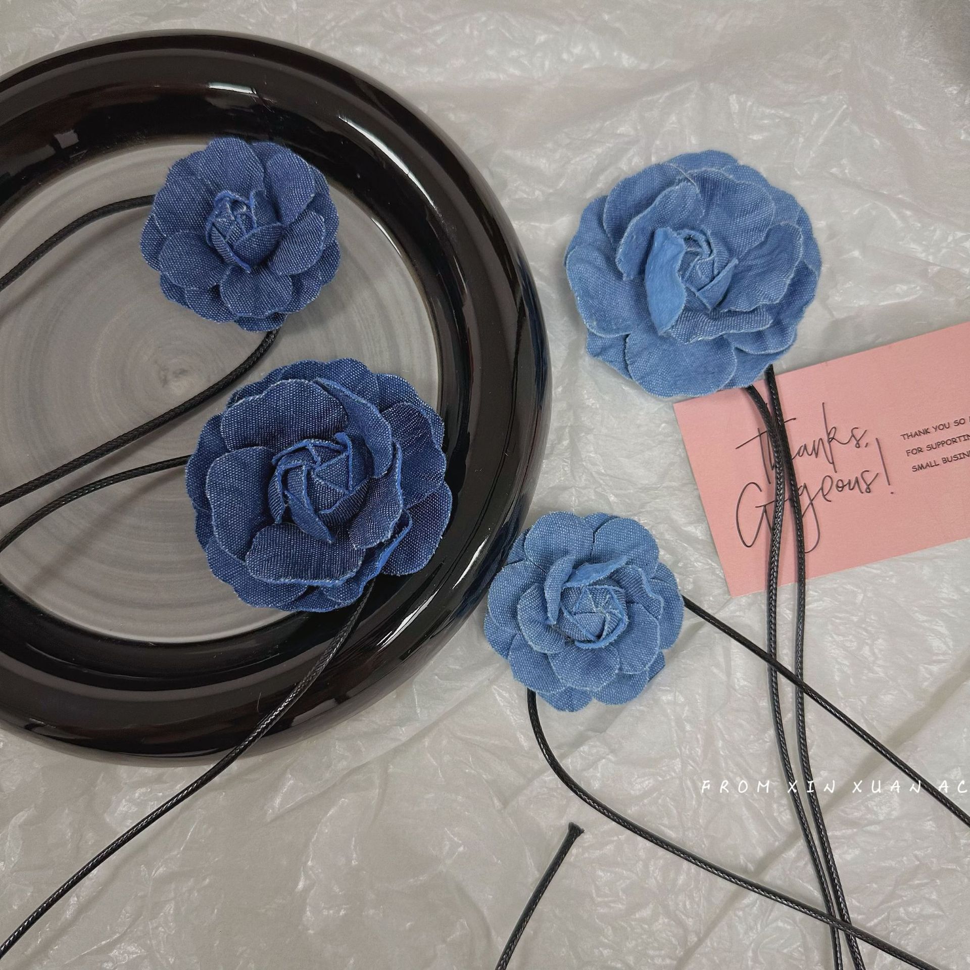 데님 동백 ~ 레이스 스타일 목걸이 하이 스타일 꽃 복고풍 프랑스 스타일 스트랩 넥 체인 넥 체인 초커 여성
