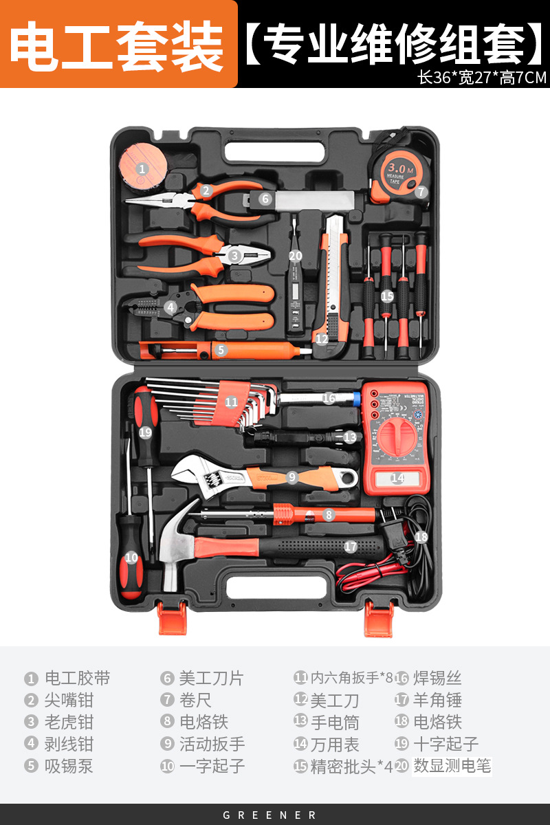 녹색 숲 가정 도구 세트 다기능 도구 전기 유지 보수 조합 하드웨어 Daquan 가족 유니버설 완전한 세트
