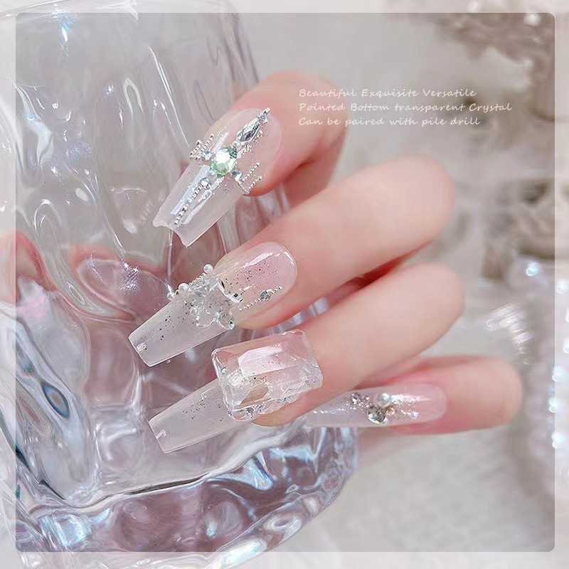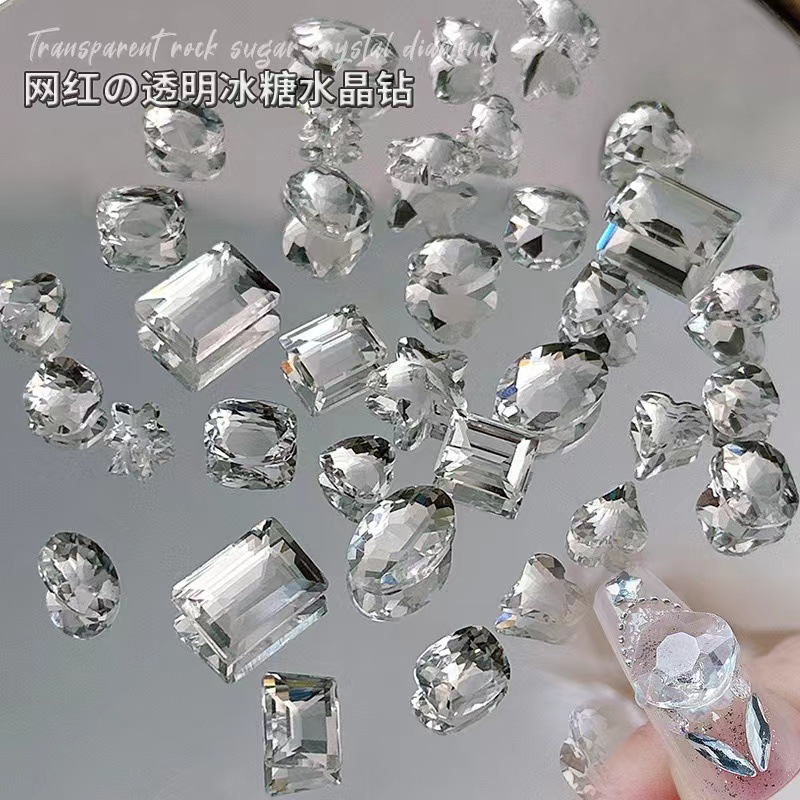 네일 아트 투명 화이트 크리스탈 바닥 큰 다이아몬드 빙하 화이트 벌거 벗은 다이아몬드 락 캔디 비뚤어진 하트 슈퍼 플래시 아이스 투명 네일 다이아몬드 액세서리스토어 가기