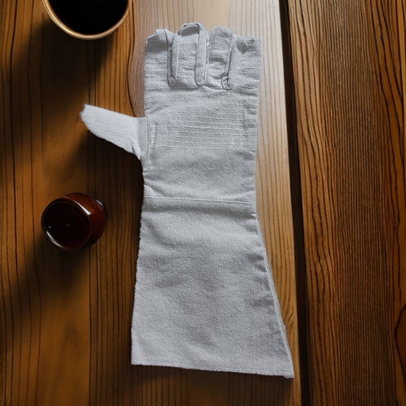 • 노란색 갑옷 천 빨간색 가장자리 캔버스 장갑