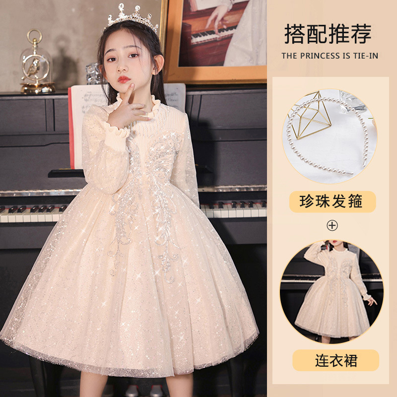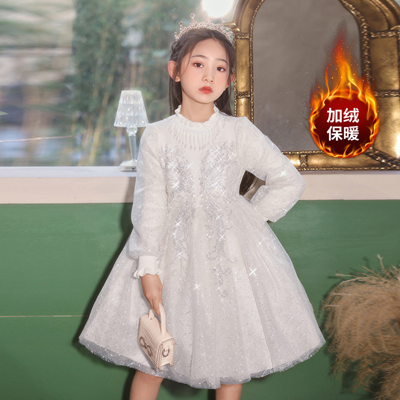 소녀 겨울 새로운 두꺼운 원피스 어린이 울 원피스 공주 원피스 소녀 꽃 소녀 결혼식 생일 원피스스토어 가기