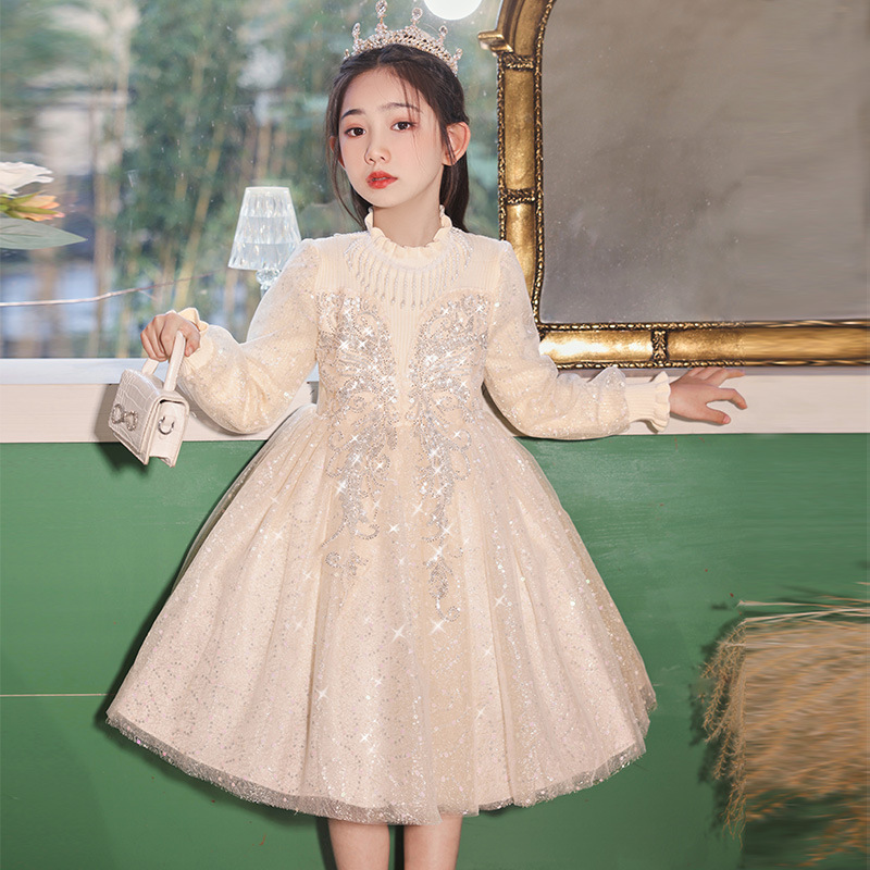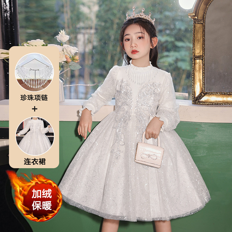 소녀 겨울 새로운 두꺼운 원피스 어린이 울 원피스 공주 원피스 소녀 꽃 소녀 결혼식 생일 원피스