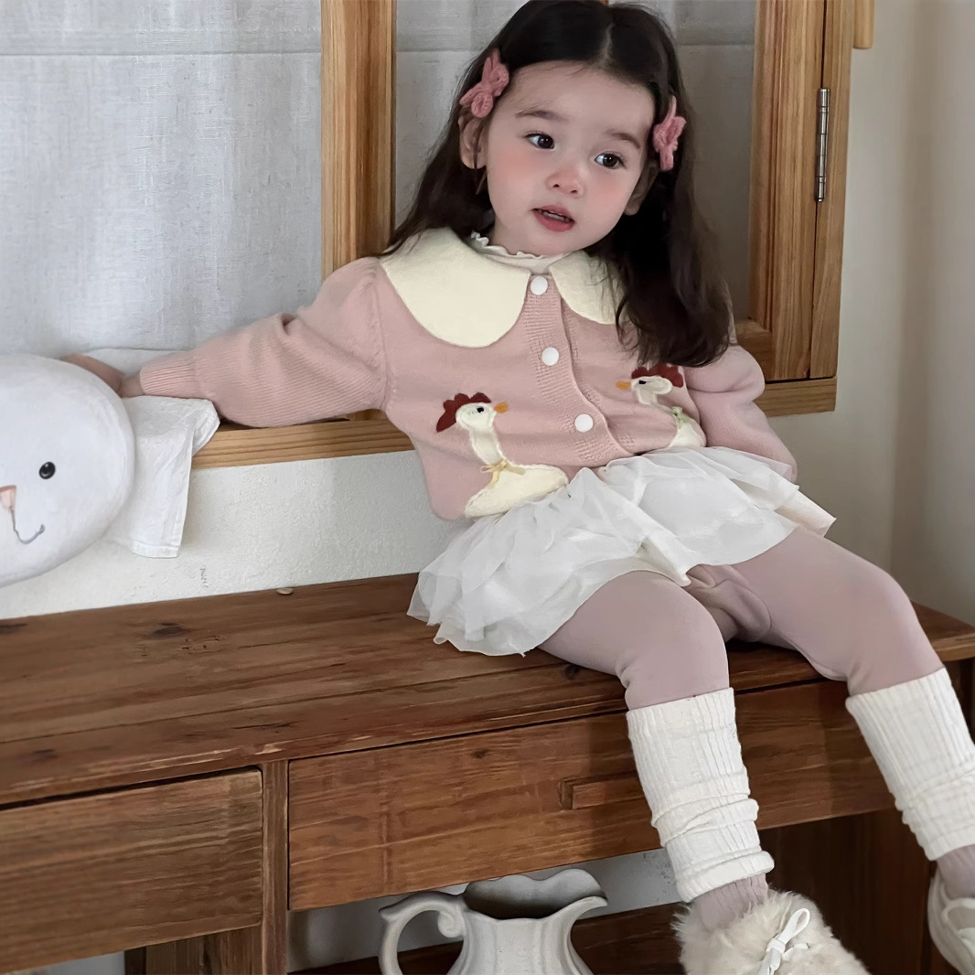 어린이 겨울 두꺼운 옷 아기 가을 겨울 의류 한국 스타일 아동복 여아 스웨터 플리스 레깅스 세트