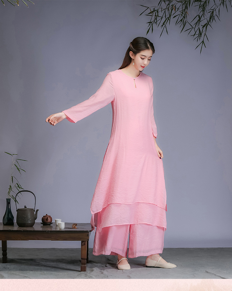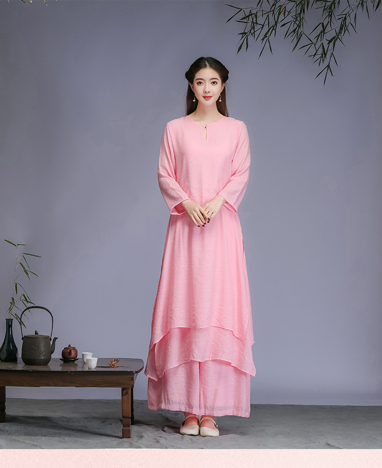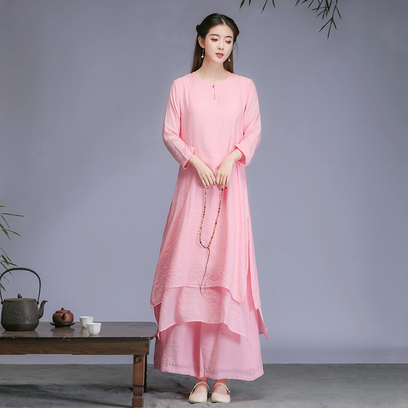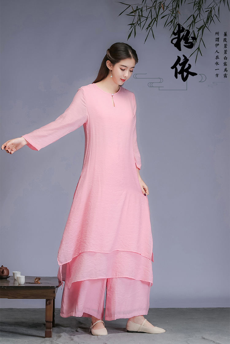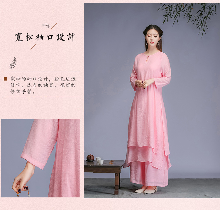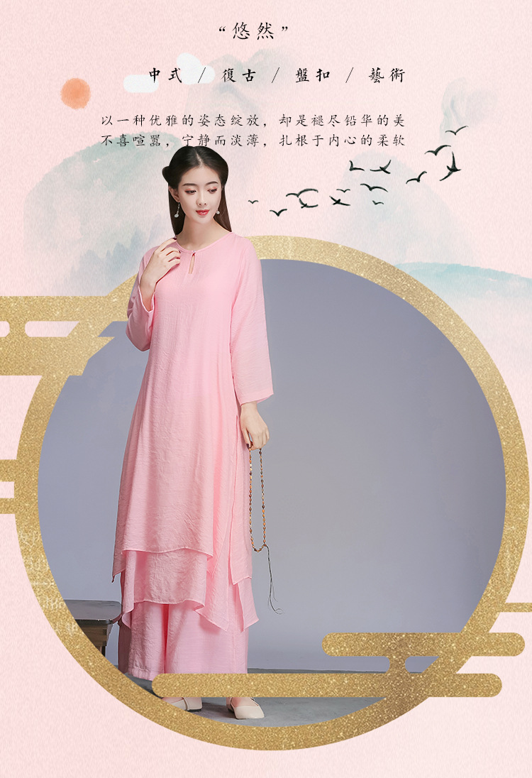 "Xinxing" Xianqi 문학과 예술 복고풍 민족 차 의류 중국 스타일 선 무대 의류 코튼 타이치 의류 세트