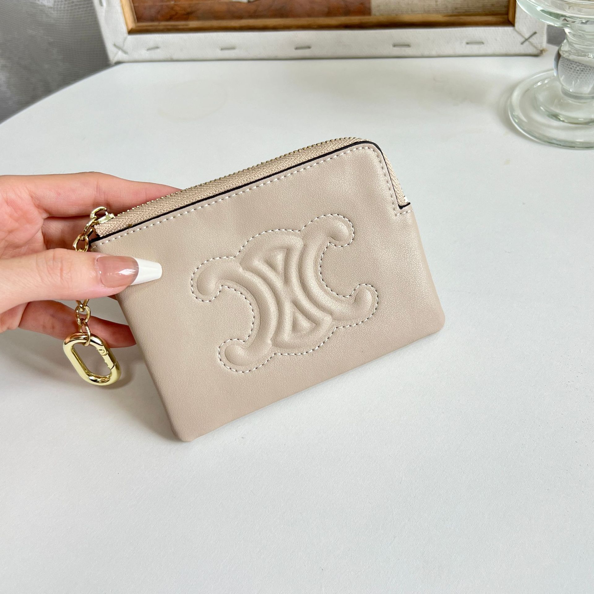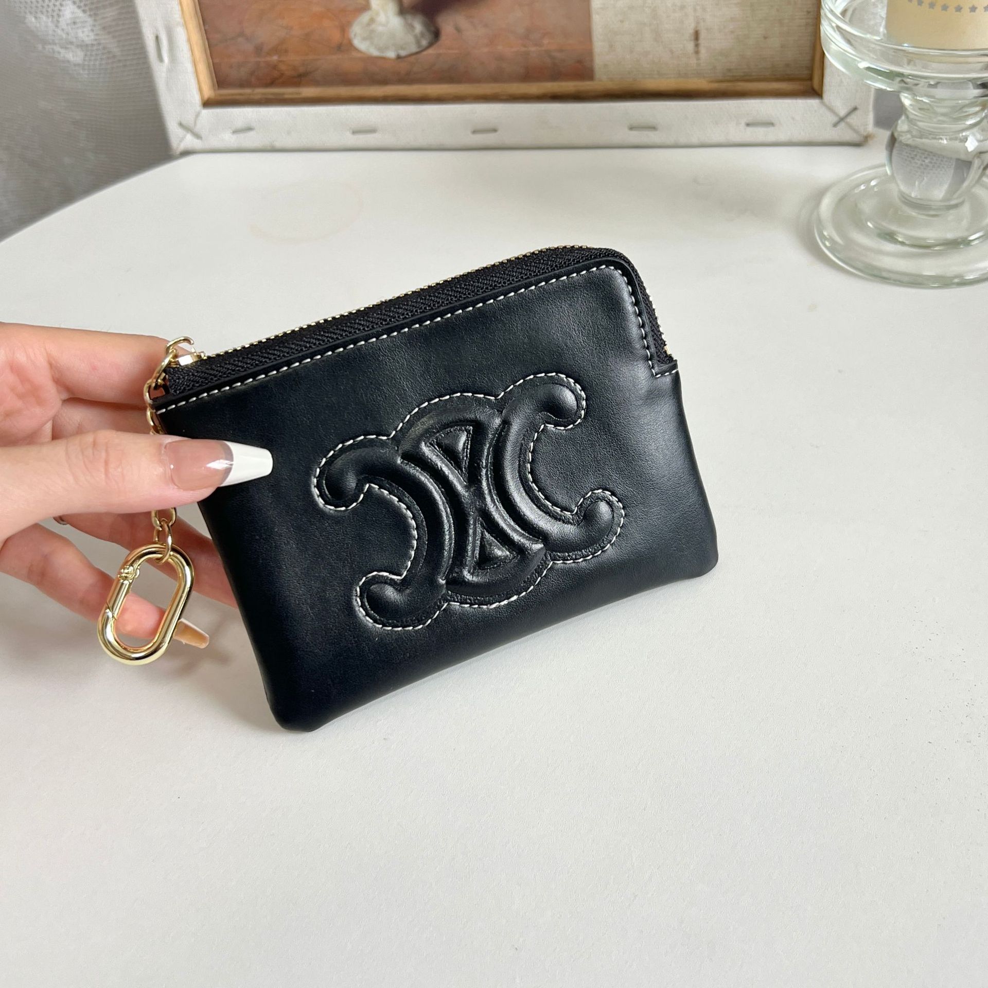 초박형 동전 지갑 여성용 가죽 빛 고급 대용량 지퍼 동전 가방 개선문 작은 카드 가방 짧은 지갑