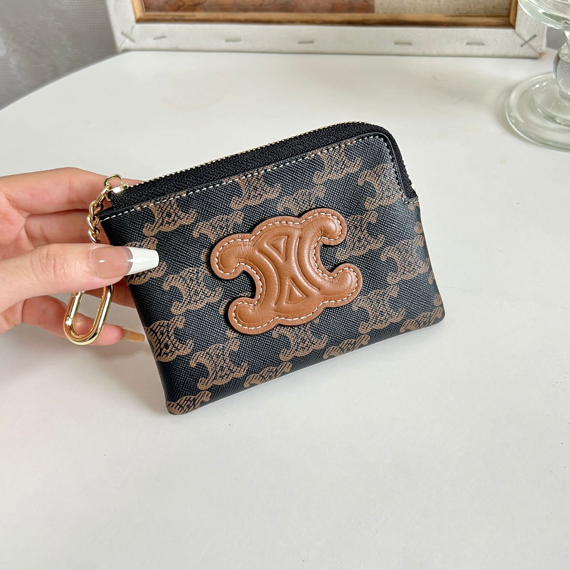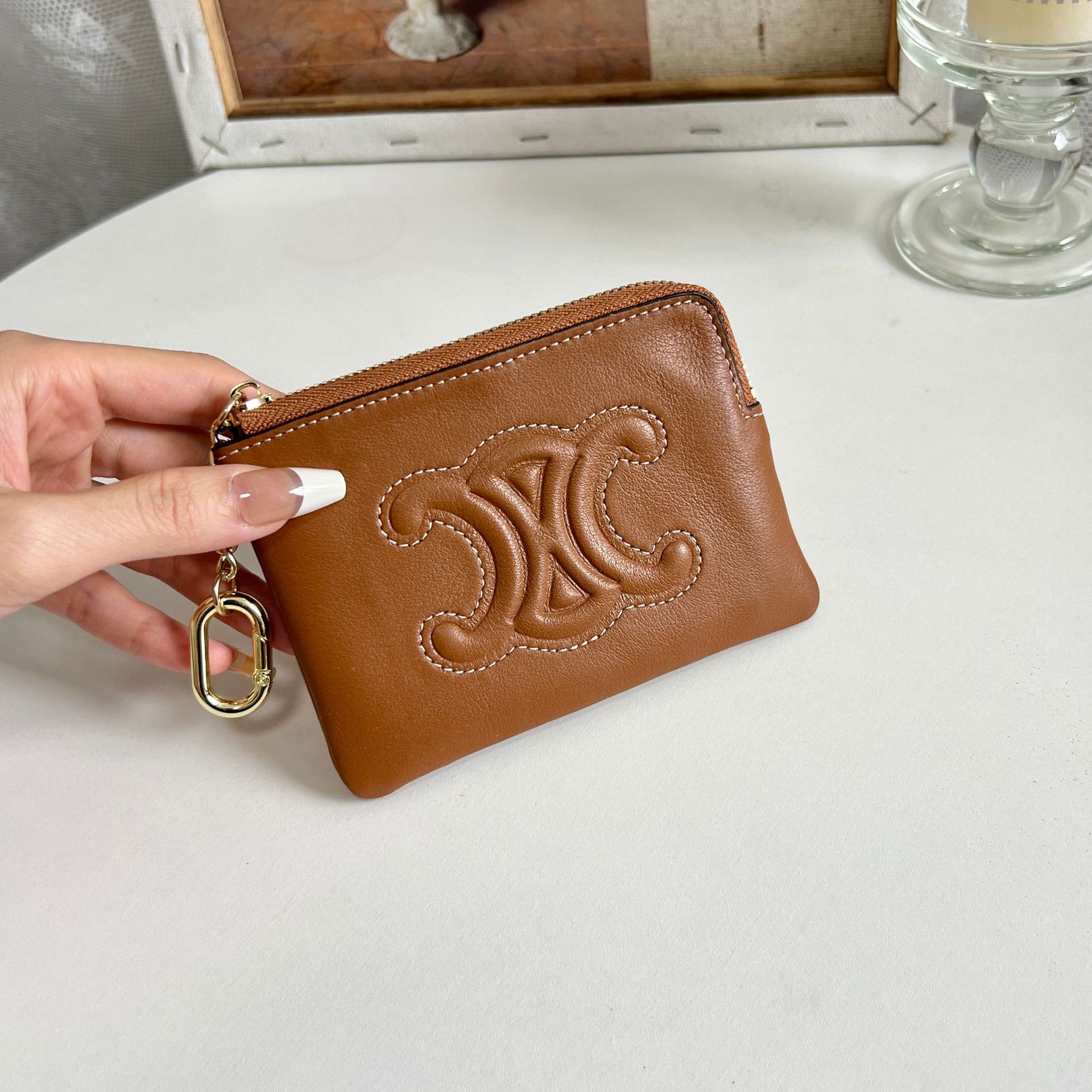 초박형 동전 지갑 여성용 가죽 빛 고급 대용량 지퍼 동전 가방 개선문 작은 카드 가방 짧은 지갑스토어 가기