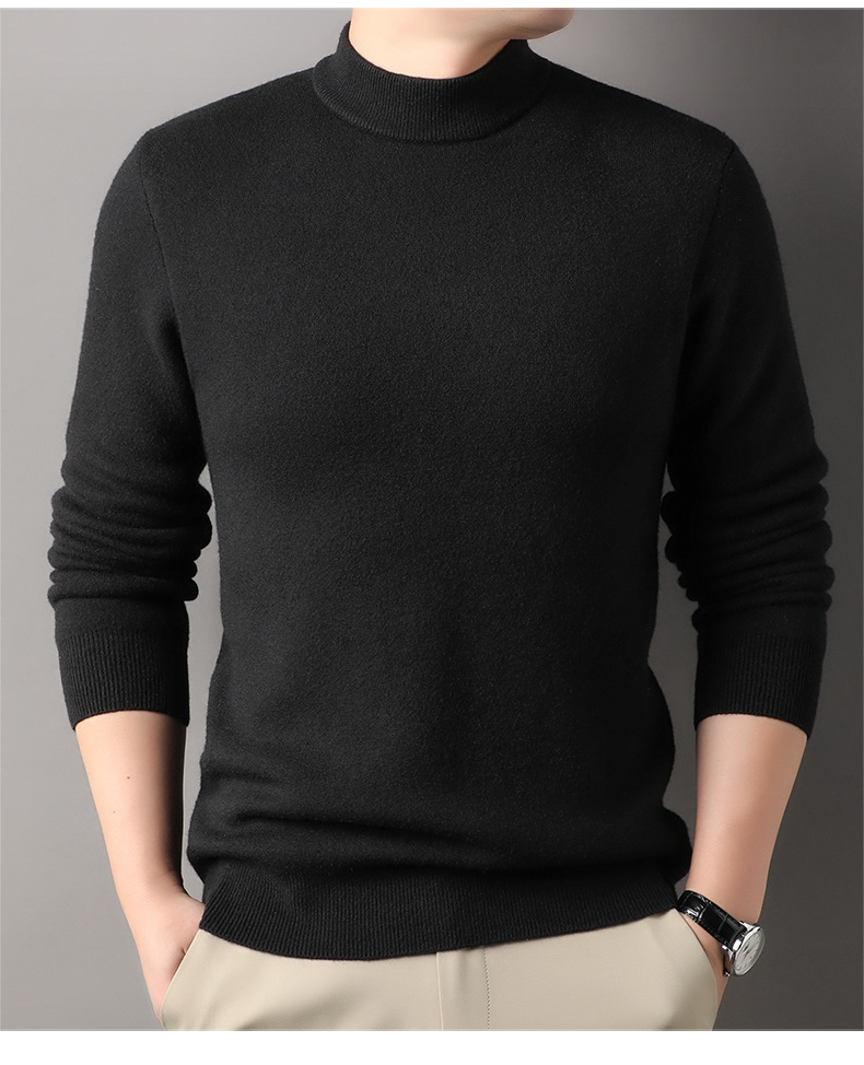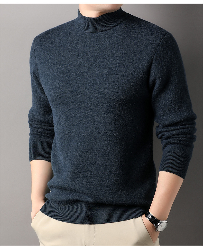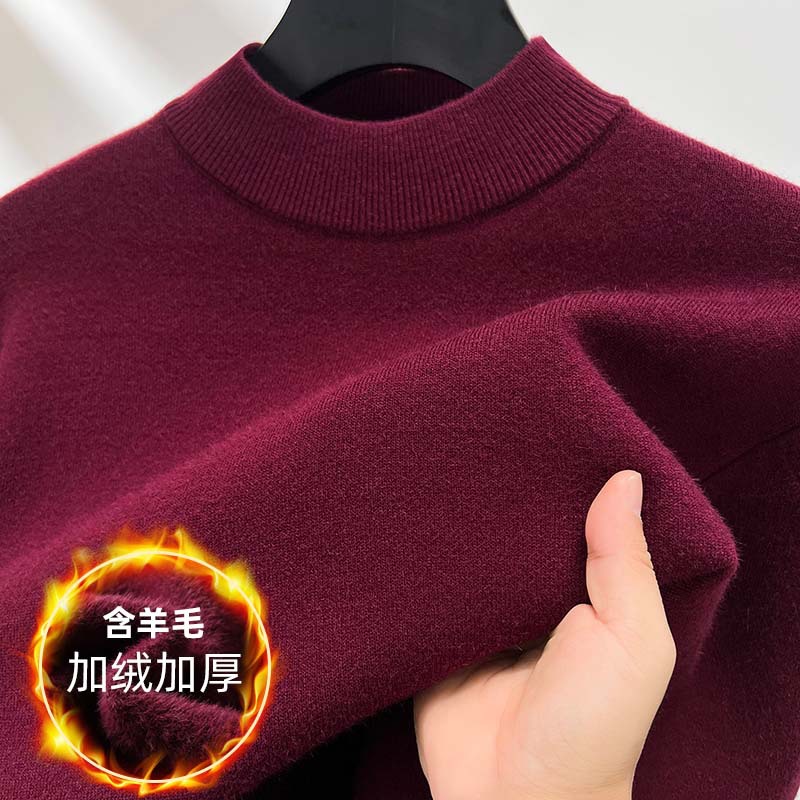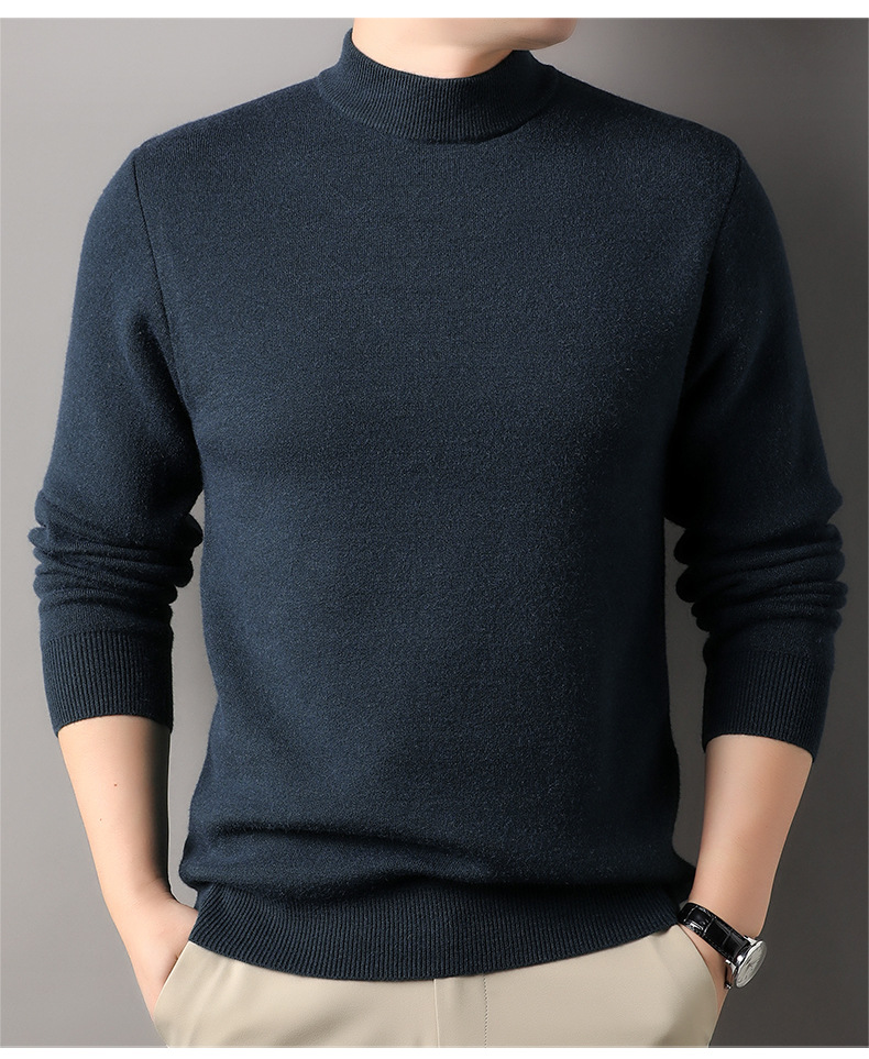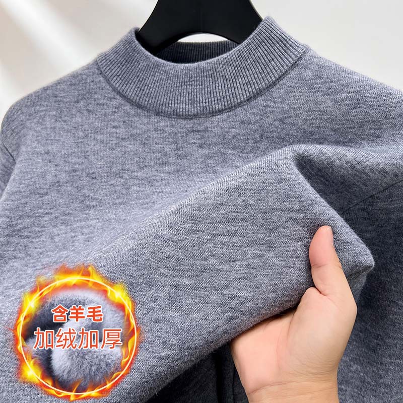 고급스러운 하프 터틀넥 남성용 스웨터, 기모 및 두꺼운 가을 겨울용 이너웨어, 겨울용 니트 스웨터, 남성용 울 스웨터스토어 가기
