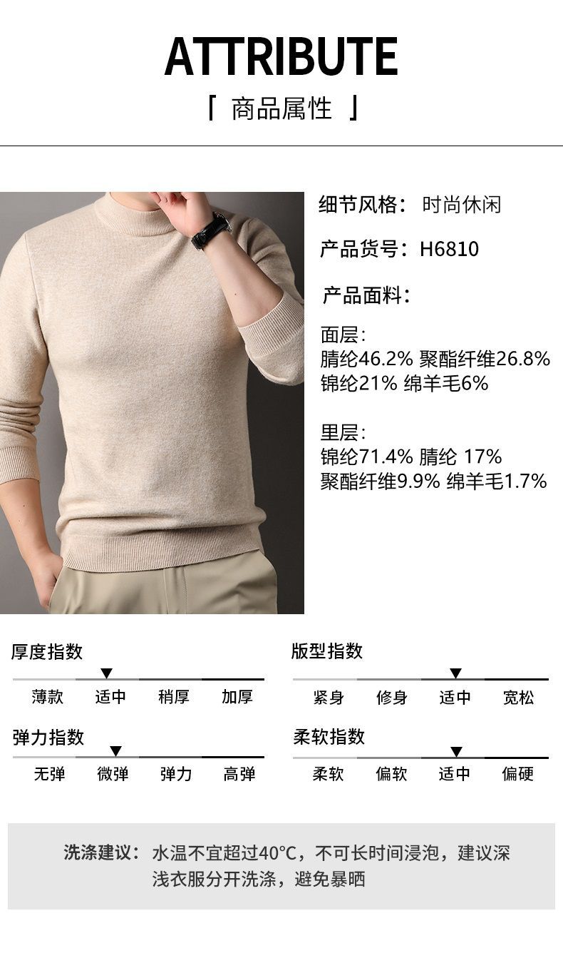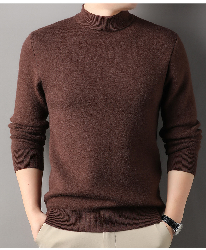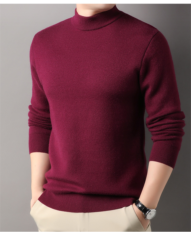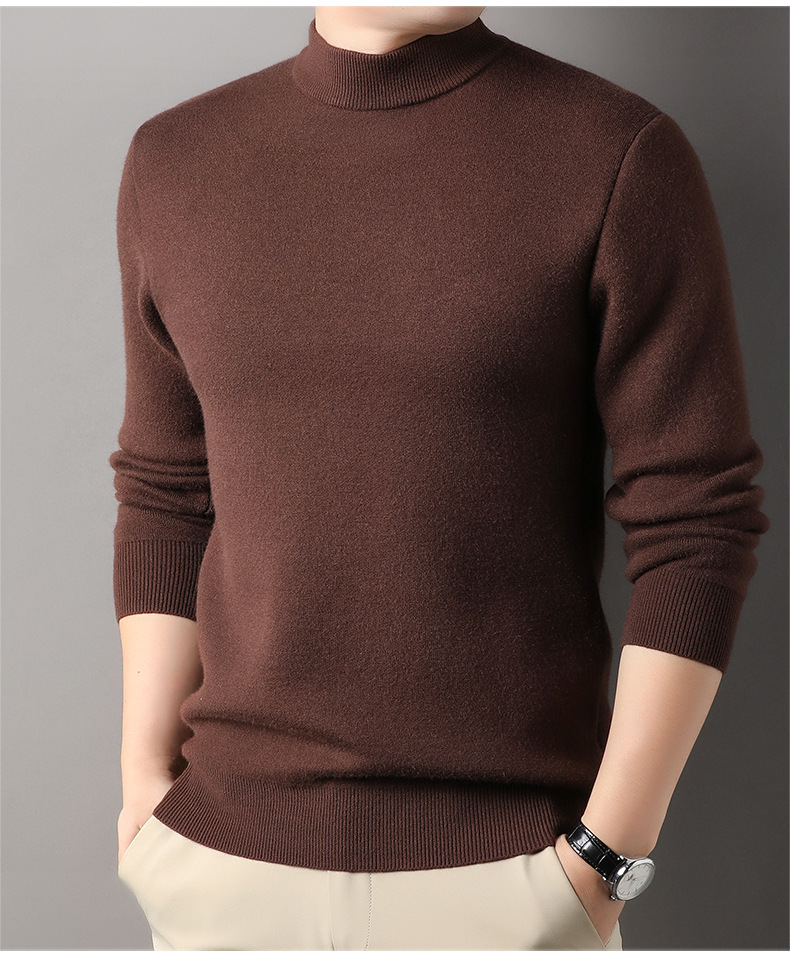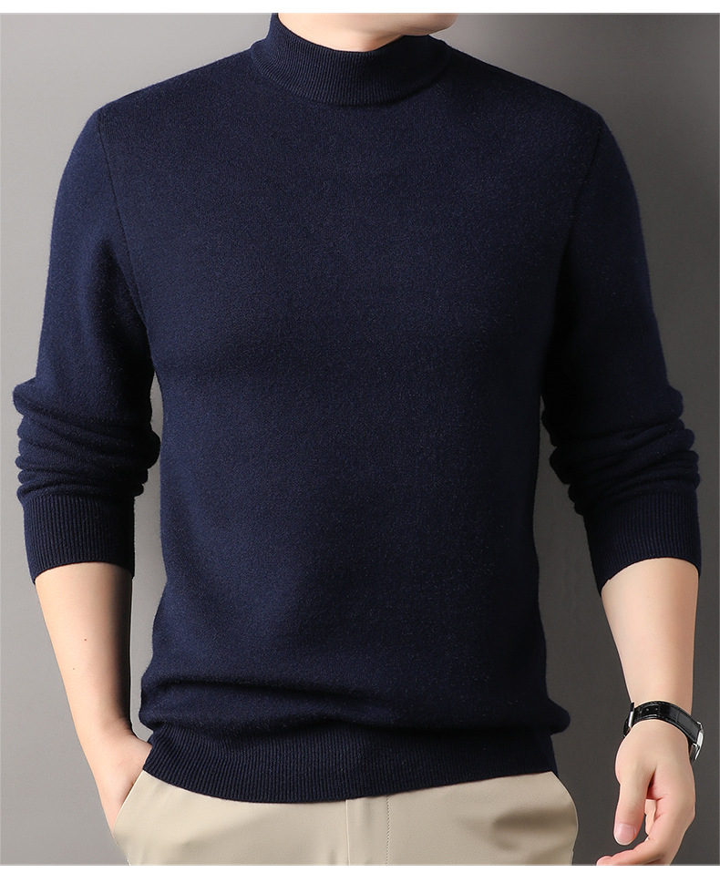 고급스러운 하프 터틀넥 남성용 스웨터, 기모 및 두꺼운 가을 겨울용 이너웨어, 겨울용 니트 스웨터, 남성용 울 스웨터스토어 가기