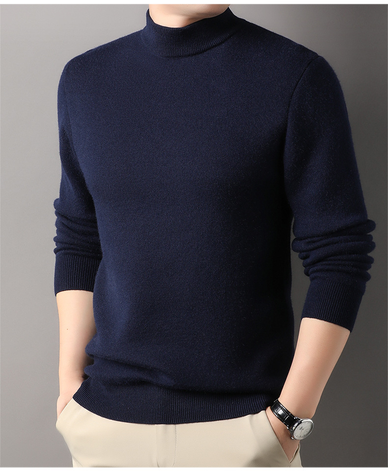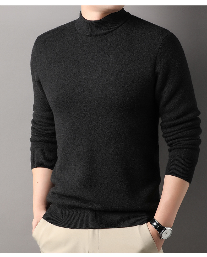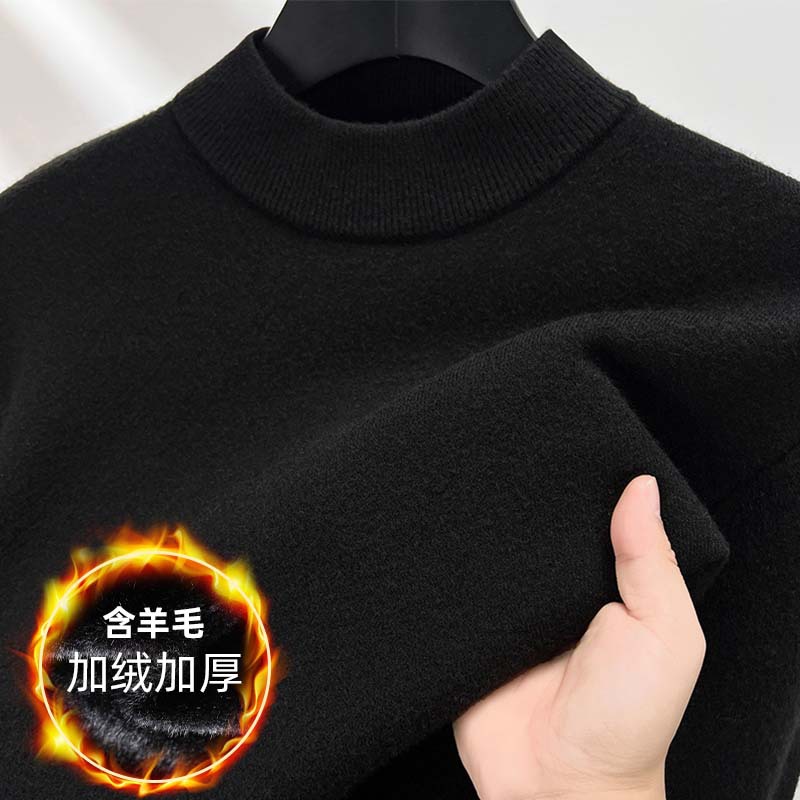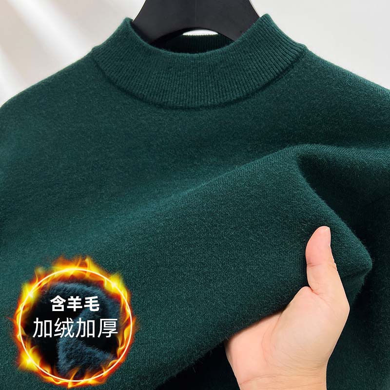 고급스러운 하프 터틀넥 남성용 스웨터, 기모 및 두꺼운 가을 겨울용 이너웨어, 겨울용 니트 스웨터, 남성용 울 스웨터