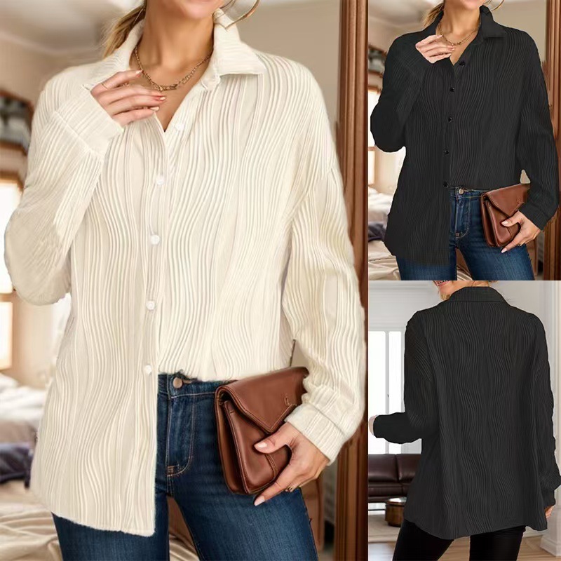 2024 국경을 넘는 유럽과 미국 여성 의류 봄과 여름 새로운 아마존 독립 역 웨이브 질감 느슨한 패션 셔츠 여성